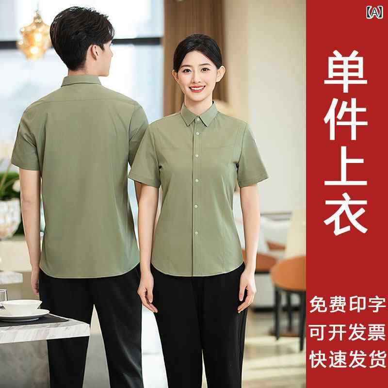 作業着 ウェイター スタッフ ケータリング ウェイター 作業着 半袖 夏 レストラン 火 鍋 コーヒー 洋食 ケーキ 屋 シャツ