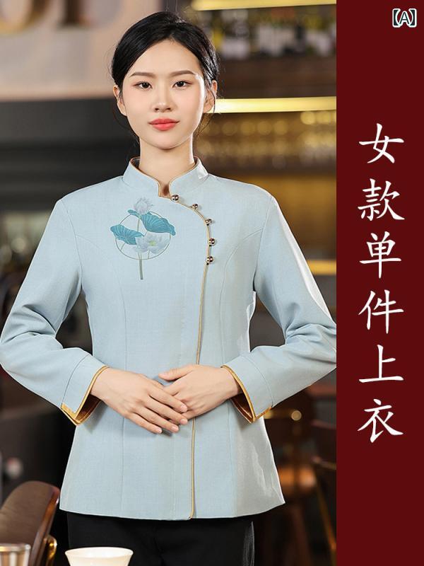 作業着 ウェイター スタッフ ホテル レストランウェイター 作業着 女性用 中華 ケータリング 鍋 レストラン プライベート キッチン ティーハウス 秋冬 長袖 スーツ