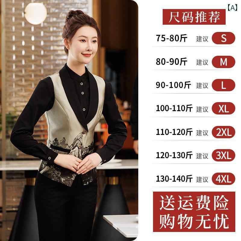 作業着 ウェイター スタッフ 風 中華 レストランの ウェイター 作業着 ベスト 女性 ホテル ケータリング スナック 服 レトロ 民族 秋冬