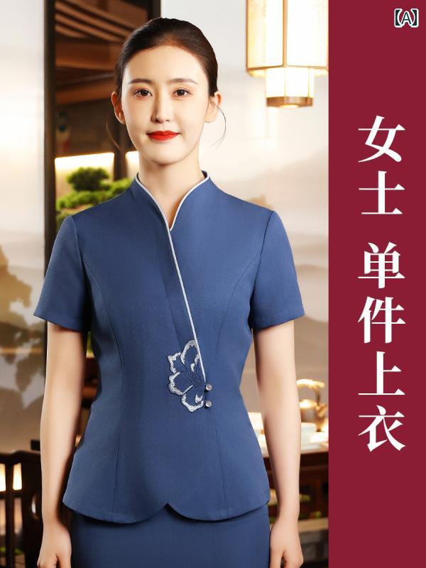 作業着 ウェイター スタッフ 五つ 星 ホテル ケータリング ウェイター 作業着 チャイナ風 半袖 女性 高級 レストラン 夏服