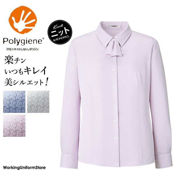 ★衿と袖口の内側にドット柄裏地を施し、汚れを目立ちにくくしました! ★ストレッチ ★アイロン不要 ★吸汗・速乾 ★UV加工 ★透け防止 素材:ストライプニット・・・繊細な淡いカラーのストライプ。 知的で優しい雰囲気の大人な女性を演出。 ニット素材で動きやすく快適な着心地をサポートします。 また、フルダル糸を使用しているので、透けにくく一枚で着ても安心です。 毛:50% ポリエステル:50% カラー:ブルー、ピンク、ラベンダー、ホワイト ●オールシーズン ●ホームクリーニング ●ニット ●吸汗速乾 ●透け防止・UVカット ●スカーフループ付 ●台衿・カフス内側汚れ防止 【価格】・5号・21号(別寸):50%UP ・7〜15号:レギュラー価格 ・17〜19号:20%UP BONMAXボンマックス ボンオフィス事務服 長袖 【ニット】シャツブラウス RB4158 フレンチツイルニット 6,237 ~