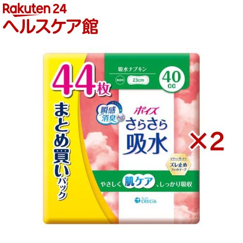 【商品名】 ポイズ さらさら吸水 吸水ナプキン 無香料 23cm 40cc 【このような場合に】 【こんな方におすすめ】 ●吸水ケア専用品の購入に抵抗がある方。 ●妊娠・出産など一時的な尿モレの方。 ●気軽に試したい方。 【保管上の注意】 開封後は、ほこりや虫が入らないよう、衛生的に管理してください。 【製造販売会社】 日本製紙クレシア(CRECiA) 【ご使用について】 ●お肌に合わないときは医師に相談してください。 ●トイレに流さないでください。 ●パッケージのインキは、アルコール、油、高温、摩擦などにより色移りする場合があります。 ●生理用ナプキンではありません。 【素材】 ●表面材:ポリオレフィン系不織布 ●色調:白 製品の特徴 ●ポイズ さらさら吸水 吸水ナプキン 無香料 23cm 40cc ●軽い尿もれ(尿漏れ)でお悩みの方や、吸水ケアを昼用ナプキンやおりものシートで代用している方におすすめな吸水ケア専用品(吸水ナプキン)です。 ●ピタッとすっきりズレ止めフィットテープを新採用。 ●キレイがつづくお肌快適シートで肌トラブルを軽減。 ●素肌と同じ弱酸性のやわらかシートだから敏感肌にもやさしい。 ●スピード吸収&モレブロック。 ●ニオイをすぐに消臭&24時間抗菌。 ●ムレにくい全面通気性。 ●妊娠・出産など一時的な尿モレにもおすすめ! ●かわいい花柄エンボス。 ●無香料。 ●品名:女性用軽度尿吸収製品 ●吸収量の目安:40cc(下着にしみる?洋服からもれる程度) ●パッドサイズ:23.0cm ポイズ さらさら吸水 吸水ナプキン 無香料 23cm 40cc まとめ買いパック 44枚入 2個セット 2,368 ~