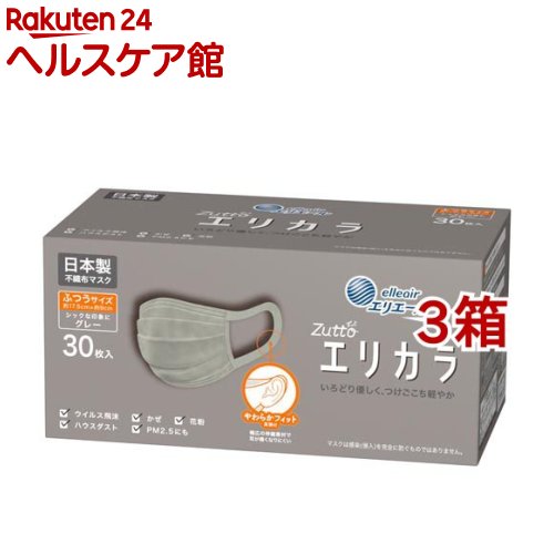 お店TOP>衛生医療>マスク>マスク 形状・素材別>不織布マスク>エリエール Zutto エリカラ グレー ふつうサイズ (30枚入*10箱セット)【エリエール Zutto エリカラ グレー ふつうサイズの商品詳細】●長時間使用でも耳が痛くなりにくい、「やわらかフィット耳掛け」を採用。 伸縮性のある幅広の素材で優しくフィットします。 ●「ムレ爽快フィルター」採用で、息がこもりにくく、ムレにくい。 高い捕集性能と通気性を両立した不織布を採用。 ●ウイルス飛沫もしっかりブロック。 不織布3層構造/国内工場生産の高機能フィルターを採用し、ウイルス飛沫や花粉の侵入を防ぎます。 ●両面カラー仕様。 【規格概要】ふつうサイズ(約17.5cm*約9cm)【ブランド】エリエール【発売元、製造元、輸入元又は販売元】大王製紙※説明文は単品の内容です。 リニューアルに伴い、パッケージ・内容等予告なく変更する場合がございます。 予めご了承ください。 ・単品JAN:4902011832891大王製紙102-0071 東京都千代田区富士見2丁目10番2号 飯田橋グラン・ブルーム(24階)0120-205-205広告文責:楽天グループ株式会社電話:050-5577-5042[マスク/ブランド:エリエール/] エリエール Zutto エリカラ グレー ふつうサイズ(30枚入*10箱セット)【エリエール】 9,519 ~