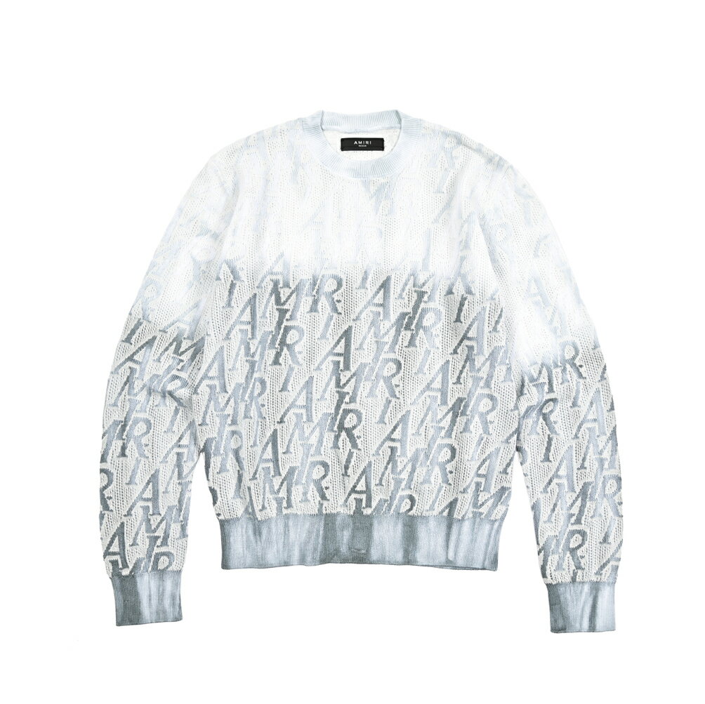 【新春初売り】【40%OFF】 アミリ AMIRI ニットセーター クルーネック ミドルゲージ 長袖 秋冬 春 3シーズン メンズ コットン ポリエステル 総柄 ブルーグレー アメリカ ブランド MADE IN ITALY