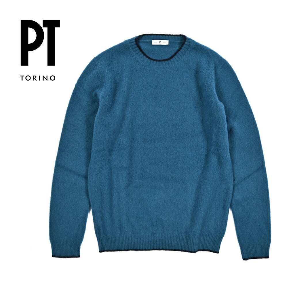 【新春初売り】【半額以下】 ピーティートリノ PT TORINO カシミヤ混 ニットセーター クルーネック ミドルゲージ 長袖 秋冬 メンズ ヴァージンウール カシミヤ ブルー イタリア ブランド PT01 MADE IN ITALY