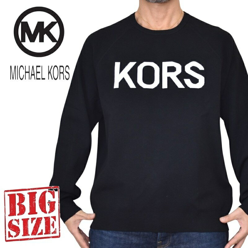 大きいサイズ メンズ MK MICHAEL KORS マイケルコース 長袖 ニット セーター ロゴ インターシャ KORS ラグラン クルーネック プルオーバー ブラック 黒 XXL 33,000 ~