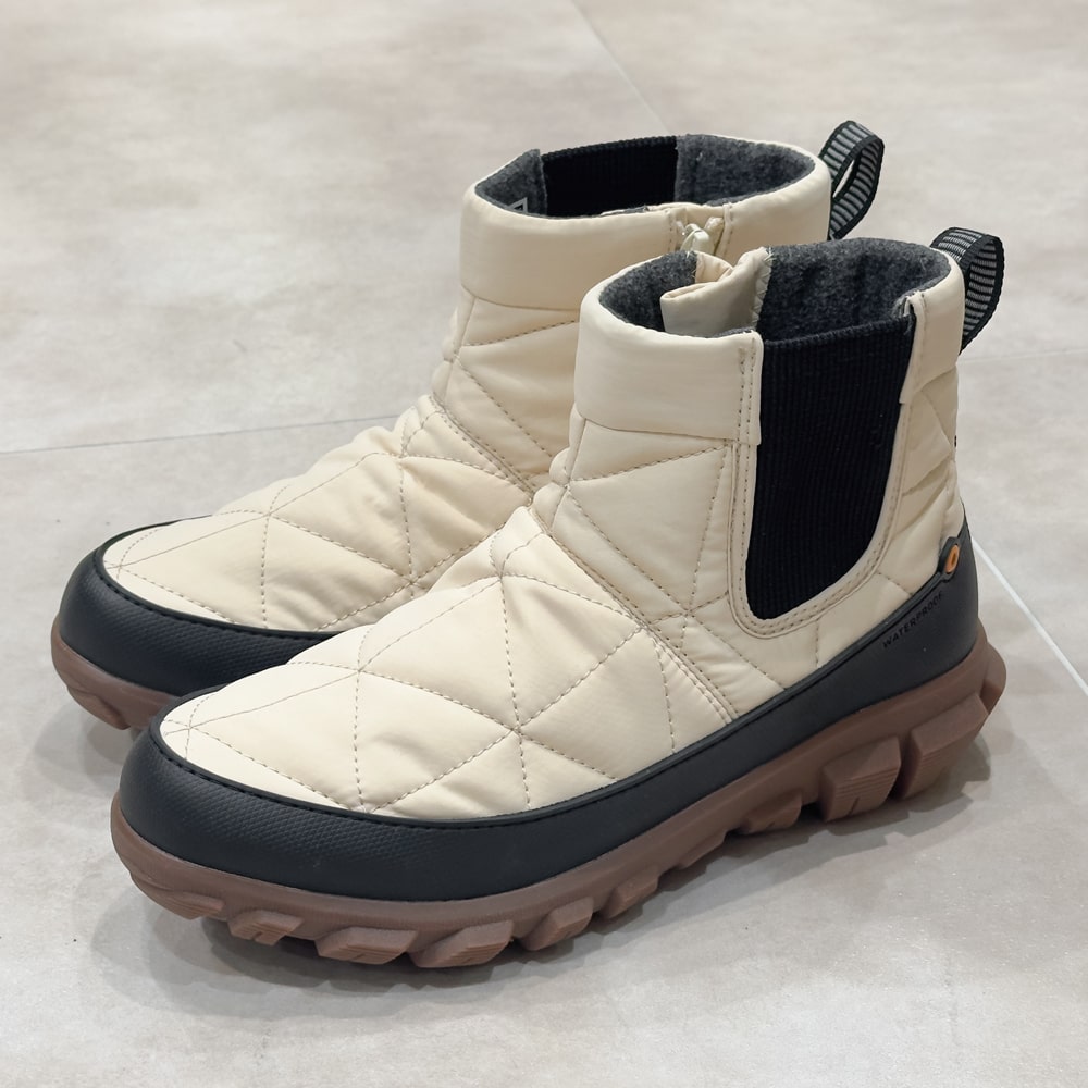 40年以上機能性を追求し“靴だけ”を作り続けている「BOGS」は、世界20ヵ国以上で展開されており、デザイン性だけではなく「防寒性・防水性・耐久性」に優れたシューズを提案し続けています。 海外の有名人、著名人からも人気があり今人気上昇中のブランドです。 サイドゴアデザインがおしゃれな機能性に優れたスノーブーツの登場。 防水仕様で、ソールには滑りやすい路面に優れたグリップ力を発揮するボグスアイスグリップを採用。 キルティング部分には保温性に優れた断熱材を採用し、肌に触れるライニングには肌触りの優しいフリースを採用しました。 足元が冷えやすい雪のシーズンも快適な履き心地を提供します。 かかとのテープは反射効果があり暗い道でも安心です。 ■商品説明 BOGS [ボグス]キルティングウォータープルーフショートスノーブーツ5A 79160 250 BEIGE ベージュ アイボリー CEDAR CHELSEA ◆原産国・素材・色 原産国:中国 素材 アッパー:合成繊維 ソール:ゴム底 COLOR/[色] BLACK [ブラック/ブラック]、D.BROWN [ダークブラウン]、BEIGE [ベージュ] ◆サイズ 6インチ (23.0cm) 7インチ (24.0cm) 8インチ (25.0cm) ※注意 海外製品のため多少の「色むら」「革傷」「裏材のしみ」はご了承ください。 箱にも傷やへこみ、中の包装紙も入荷時より破れているものもございます。 出荷時に再度確認はしておりますが、プレゼントなどでご利用の場合や、少しでも気になるお客様は事前にお問い合わせください。 撮影環境やお使いのディスプレイによって色目が異なって見える事が御座います。 重ねてご了承下さい。 OTHER COLORS D.BROWN [ダークブラウン] BLACK [ブラック/ブラック] 【期間限定10%OFF】BOGS [ボグス]キルティングウォータープルーフショートスノーブーツ5A 79160 250 BEIGE ベージュ アイボリー CEDAR CHELSEAチェルシー / 防水 / アンクル / 滑りにくい / ゴム底 / 雪 / 18,810 ~
