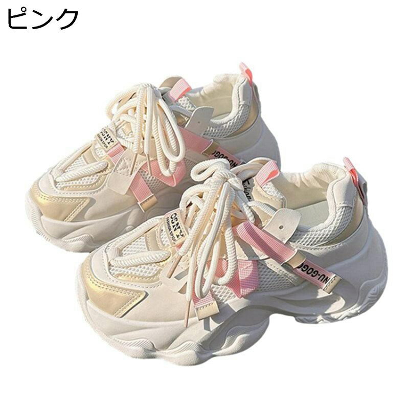 スニーカー 厚底靴 レディース スポーツシューズ ダッドスニーカー レースアップ メッシュ カジュアル 滑り止め 5cmヒール ウォーキングシューズ 通気性 滑りにくい 春夏秋 普段使い アウトドア 6,000 ~