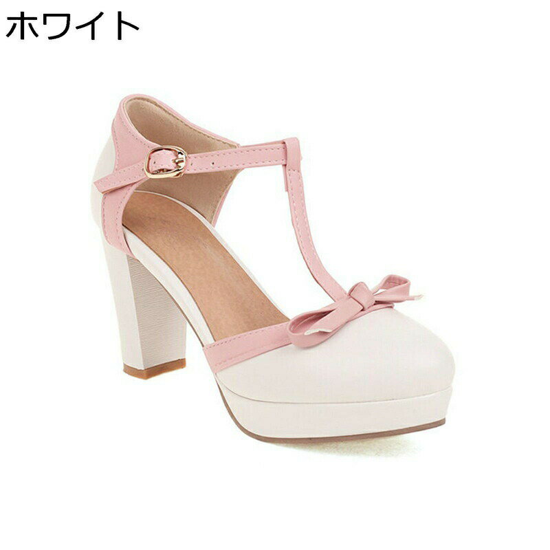 小さいサイズ パンプス 大きいサイズ レディース リポン ロリータ靴 T型ストラップ プラットフォーム ハイヒール アンクルストラップ 蝶結び 8.5cm 定番 茶話会 仮装 親子 アイドル 甘い 7,280 ~