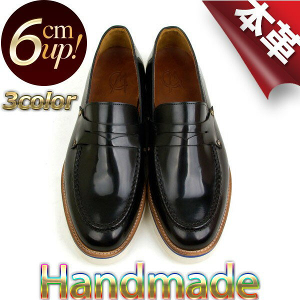 【6cm 身長UP】ローファー コインローファー メンズ カジュアルシューズ カジュアルスタイル シークレット ヒールアップ インソール ブラック ブラウン ネイビー 24,840 ~