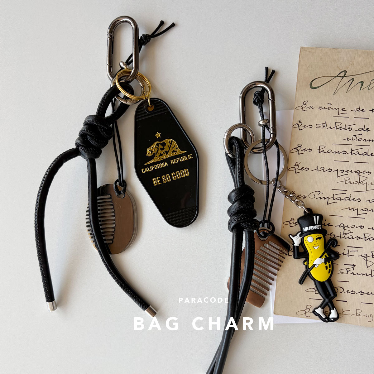バッグや小物につけたいバッグチャーム! トレンドのコーム付バッグチャーム! ブラックでまとめた大人チャーム。 人気のモチーフを付けました。 個性を楽しんでください。 バッグに付けても邪魔にならない軽さと程よいサイズ感。 さりげなく可愛さをアピールできます。 ・ギフトにも最適 人気のバッグチャームは、プレゼントにもぴったり。 誕生日や記念日など、特別な日の贈り物にもおすすめです。 インスタ映えアイテムとしても重宝します。 サイズ:全長 約23cm ハンドメイドにつき1点1点多少異なります。 ヤマト運輸ネコポス便での発送となります。 配達指定不可。 関連商品【ラストスパートクーポン配布中】アクリルキーホルダー キャラクターチャ...【ラストスパートクーポン配布中】【予約品】オールド キャラクターミニー...2,690円2,690円【ラストスパートクーポン配布中】キャラクターチャーム パラコードチャ...【ラストスパートクーポン配布中】USA ジェリー ラバーチャーム キャ...2,690円2,890円【ラストスパートクーポン配布中】USA フィリックス ラバーチャーム ...【ラストスパートクーポン配布中】むにゅっと KITTYチャーム レッ...2,890円2,490円【ラストスパートクーポン配布中】キャラクター パラコードチャーム バ...【ラストスパートクーポン配布中】ビスケット付き バッグチャーム ねこ ...2,890円2,690円【ラストスパートクーポン配布中】ミトン ムートンチャーム ホテルタグプ...【ラストスパートクーポン配布中】USA フィリックス ラバーチャーム ...2,690円2,890円デイリー使いのバッグにプラスするだけで、一気にオシャレ度アップ 【マラソン最終日◆5%オフクーポン】シルバーコーム付き バッグチャーム ブラックカラビナコーデ バッグチャーム バッグアクセサリー じゃらじゃらつけ 韓国風チャーム キーホルダー じゃら付け カラビナ キャラクター付き モーテルタグキーホルダー 2,690 ~