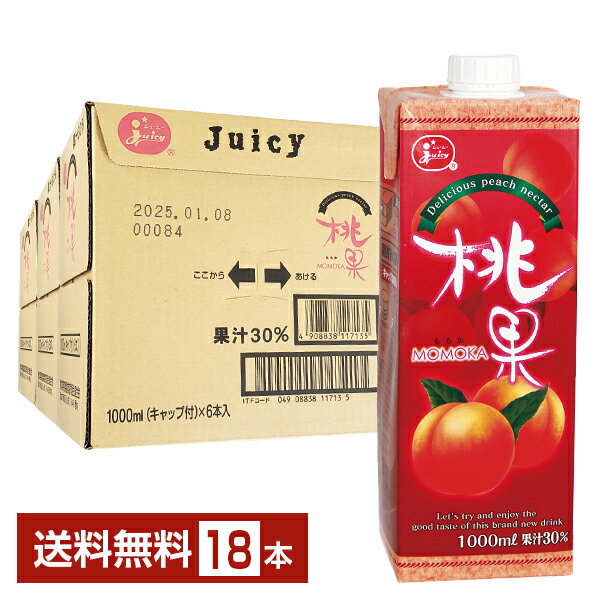 ジューシーは、JA熊本果実連が熊本市と南アルプスの麓、山梨県白州町の両ジュース工場で、新鮮な果実・野菜と良質な水を利用してつくる、高品質で安全な清涼飲料水のブランドです。 豊かな自然の中でつくられたフルーツや野菜を、安心・安全に食卓にお届けできるよう、2つの工場ではHACCPシステムにもとづいた衛生管理を行っております。 また、品質マネジメント規格であるISO9001、食品安全マネジメント規格であるFSSC22000の認証を取得し、安心で質の高い商品づくりを目指しています。 ジューシーは、学校給食を応援しています。 もともとジューシーは、成長期の子どもたちを思って開発された飲み物。 全国有数のみかんの産地である熊本のみかんを、おいしさも栄養素もそのままに飲んでもらいたいと試行錯誤して生まれました。 1973(昭和48)年に、紙パック入りのみかんジュースとして全国で初めて学校給食に導入。 いまでも熊本・鹿児島両県の小中学校で年間100万本以上が飲まれています。 ITEM INFORMATION 果肉感のあるとろっとした口当たり 白桃の果実を食べているような みずみずしくジューシーな味わい juicy ジューシー 桃果 MOMOKA ジューシー ももか 果汁30% ジューシー 桃果は、白桃の瑞々しくジューシーな味わいと濃厚な甘みをそのまま楽しめるジュース。 果肉感のあるとろっとした口当たりと豊潤な香り、桃の果実を食べているような飲み心地です。 商品仕様・スペック 生産者ジューシー 商品名ジューシー桃果 タイプ果汁入り飲料 原材料もも(輸入)、ぶどう糖果糖液糖/香料、酸味料、酸化防止剤(ビタミンC) 容 量1000ml ジューシー ジューシー桃果 1L 1000ml 紙パック 6本 1ケース【送料無料(一部地域除く)】 juicy 桃 白桃 もも ももか 2,841 ~