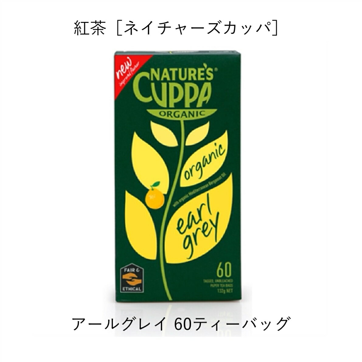 紅茶[ネイチャーズカッパ]アールグレイ 60ティーバッグ[ナチュラル&フェアトレード紅茶 / USDA] スリランカ高地の農園で栽培された上質な茶葉に、地中海で育った天然のベルガモットの香りをブレンドしました。 ホットでもアイスでも一年中楽しむことができる紅茶です。 Nature’s Cuppaは1986年オーストラリアのメルボルンで誕生した紅茶ブランドです。 化学合成農薬や化学肥料に頼らず、NASAA・USDA認証の農園で栽培された茶葉はすべて手で摘み取られています。 またフェアトレードにより、Nature’s Cuppaに関わるすべての人々が利益を分かち合い公正な取引を行っています。 味と香り、環境やエコにこだわった最高品質の紅茶をお届けします。 スリランカ高地の農園で栽培された上質な茶葉に、地中海で育った天然のベルガモットの香りをブレンドしました。 ホットでもアイスでも一年中楽しむことができる紅茶です。 名 称:紅茶原材料:紅茶 / 香料(ベルガモットオイル)内容量:132g (2.2g×60ティーバッグ)原産国:スリランカ認 証:NASAA / USDA無漂白ティーバッグFAIR & ETHICALNaturally 98% caffeine free (カフェイン含有量2%未満)*本製品はカフェインを含有しております。 【パッケージについて】・箱入り:通常パッケージ・業務用(箱無):業務用パック。 外箱なし。 袋入り。 ・ネコポス用:ネコポス配送用パッケージ。 外箱なし。 袋入り。 送料がお得。 ※一袋に60ティーバッグ(ネコポス用は30ティーバッグ×2袋)がまとめて入ってます。 (小包装ではありません/チャックなし袋)保存方法について・直射日光・高温多湿をさけて保存してください。 ・開封後はお早めにお召し上がりください。 配送について・宅急便:箱あり60ティーバッグ、業務用(箱無)60ティーバッグ・ネコポス:ネコポス用60ティーバッグネコポス配送について・配送はネコポス(ヤマト運輸)・ポスト投函(配送先ポストへお届け)・ポストへのお届けが難しい場合には不在票が入ります。 ・日時指定不可(追跡可能)・常温配送・簡易梱包(潰れ・へこみなど損傷の可能性がございます)・ご発注数により複数口や宅急便発送となる場合がございます。 5