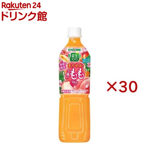 お店TOP>水・飲料>野菜ジュース・フルーツジュース>フルーツジュース・果実ジュース>フルーツ・野菜ジュース>野菜生活100 まろやか3種のももミックス (15本入×2セット(1本720ml))【野菜生活100 まろやか3種のももミックスの商品詳細】●白桃と黄桃とネクタリンのまろやかな甘さで、季節のおいしさをお届けする野菜・果実ミックスジュースです。 ●たっぷりビタミンC。 ●砂糖不使用。 ●家族みんなでおいしくお飲みいただけます。 【品名・名称】野菜・果実ミックスジュース【野菜生活100 まろやか3種のももミックスの原材料】野菜(にんじん(輸入)、ケール、ほうれん草、アスパラガス、クレソン、パセリ、かぼちゃ、レタス、キャベツ、ビート、だいこん、はくさい、たまねぎ、セロリ)、果実(りんご、マンゴー、レモン、もも、ネクタリン)/香料、ビタミンC、クエン酸【栄養成分】コップ1杯(200ml)当たりエネルギー:79kcal、たんぱく質:0.5g、脂質:0g、炭水化物:19.5g(糖質:19.0g、糖類:16.4g、食物繊維:0〜0.9g)、ナトリウム:7〜107mg(食塩相当量:0.01〜0.3g)、カリウム:130〜470mg、カルシウム:8〜29mg、ビタミンC:45〜180mg、ビタミンK:0〜4μg、葉酸:1〜17μg【アレルギー物質】もも、りんご【保存方法】直射日光を避けて保存してください。 【原産国】日本【ブランド】野菜生活100 PET・缶【発売元、製造元、輸入元又は販売元】カゴメ※説明文は単品の内容です。 リニューアルに伴い、パッケージ・内容等予告なく変更する場合がございます。 予めご了承ください。 ・単品JAN:4901306302668カゴメ103-8461 東京都中央区日本橋浜町三丁目21番1号 日本橋浜町Fタワー0120-401-831広告文責:楽天グループ株式会社電話:050-5577-5043[野菜ジュース・フルーツジュース/ブランド:野菜生活100 PET・缶/] 野菜生活100 まろやか3種のももミックス(15本入×2セット(1本720ml))【野菜生活100 PET・缶】 9,572 ~