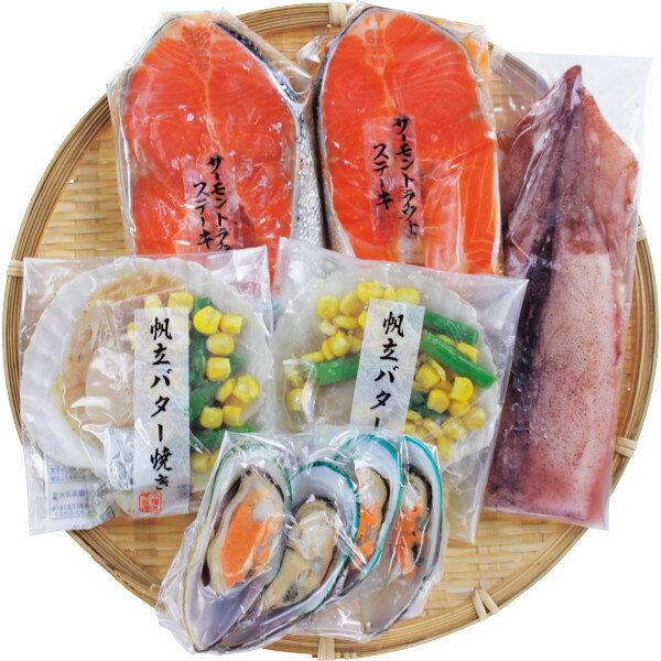 脂ののったサーモントラウトステーキをはじめ帆立バター焼きやパーナ貝、いかを詰合せました。 ご自宅のグリルでもお楽しみいただける海鮮焼きの詰合せです。 ●サーモントラウトステーキ150g×2、帆立バター焼き(ホタテガイ、アスパラ、とうもろこし、バター)×2、つぼ抜きいか×1、パーナ片貝×4●箱サイズ:29×23×8cm●箱重量:1kg●温度帯区分:冷凍●賞味期限は10日以上の商品をお届けします●アレルゲン:乳成分、いか、さけ(ギフトの目的別)・お祝い:結婚 出産 誕生日 入学 卒業 新築 開店 昇進 還暦など・お返し:内祝い 結婚 出産 香典 快気など お礼 ご挨拶・弔事:香典返し 法要 お供え 満中陰志など・季節:お中元 お歳暮 バレンタイン ホワイトデー 母の日 父の日 敬老の日 クリスマスなど(ギフトのシーン別)・慶事:結婚式 披露宴 二次会 入園式 卒業式 入進学 卒園など・弔事:通夜 告別式 法事 年忌法要 1周忌 三回忌 七回忌など・その他:手土産 贈り物 プレゼント 粗品など(ギフトの相手別)・家族:両親 兄弟姉妹 配偶者 子供など・友人:友人 知人 同僚 上司 先輩 後輩など・親戚:親戚 ご近所など・法人:企業 団体など(ギフトの種類別)・食品:菓子 飲料 調味料など・日用品:タオル 食器 洗剤など・雑貨:インテリア雑貨 ファッション小物など・ギフトセット:詰め合わせ カタログギフトなど(その他)・贈答品:贈り物 プレゼント 手土産など・記念品:結婚記念 卒業記念など・賞品:コンペ イベントなど 海鮮焼き詰合せ お返し 内祝い 出産 結婚 挨拶 手土産 退職 祝い プレゼント 引越し 新築 御挨拶 粗品 快気祝い お見舞い返し 全快祝い 御礼 お礼 7,560 ~