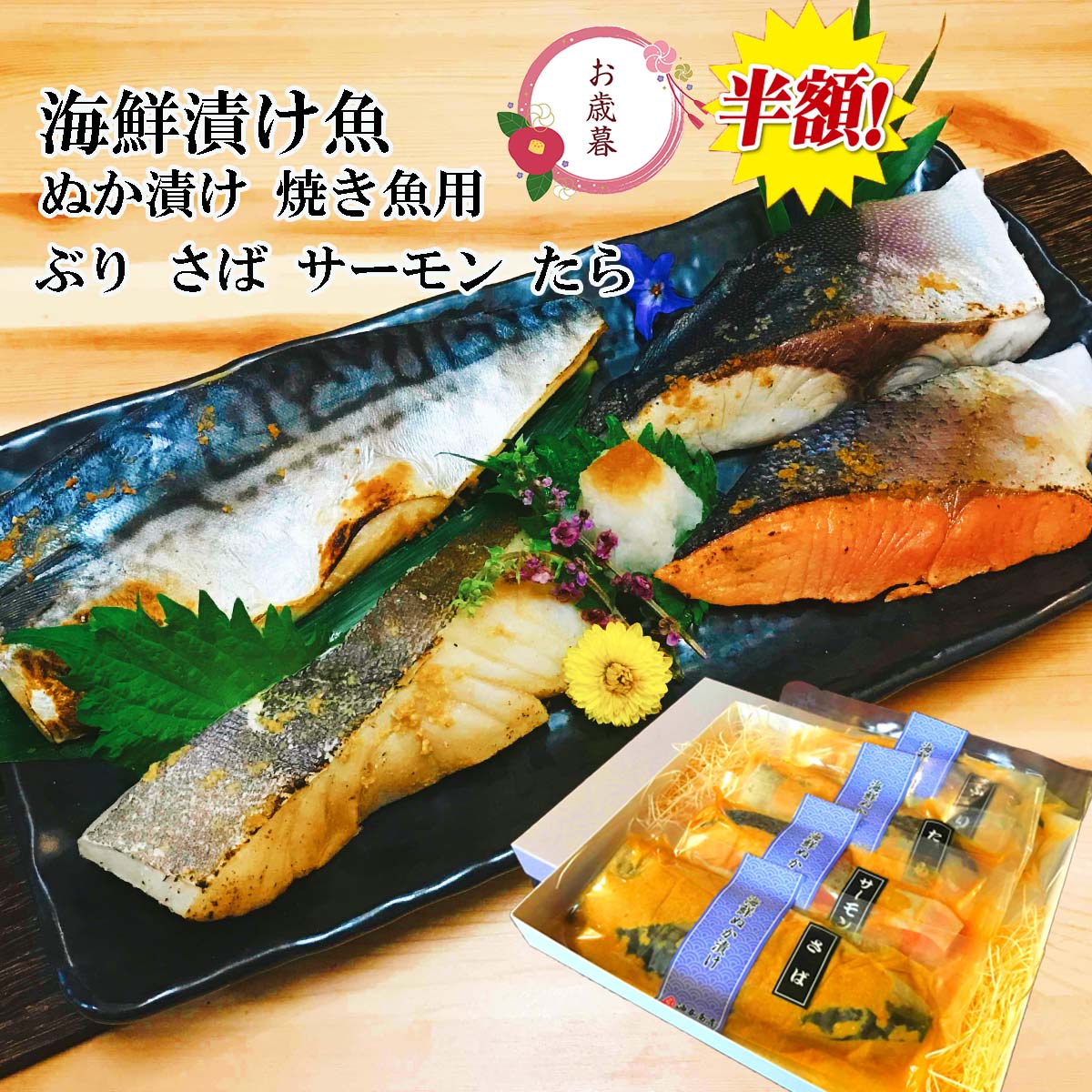 【名称】水産加工物 【原材料:トラウトサーモン・養殖ぶり・たら・さば・米糠・甘酢・食塩・糀・唐辛子・いしる(原材料の一部に鯖を含む)】 【内容量:サーモン海鮮ぬか漬け 一切・ぶり海鮮ぬか漬け一切・さば海鮮ぬか漬け一切・たらの海鮮ぬか漬け一切】 【賞味期限:冷蔵にて解凍後6日間】 【原料原産地:ノルウェー産…トラウトサーモン・さば、国産…ぶり、アメリカ産…たら】 【保存方法】冷凍−18度以下で90日 【製造者】油与商店 石川県金沢市金石上越前町4番15号 *お願い:防腐剤・保存料は使用いたしておりません。 解凍後は、お早めにお召上がり下さい。 【配送:商品の特性上、冷凍便での発送となります。 他の冷蔵物との配送の場合まとめて冷凍便にて送らせて頂きます】 お召し上がり方 付いている糠をこそげ取り、グリル又はフライパンにて加熱してお召し上がりくださいませ。 塩分が気になる方は糠を洗いおとし、加熱してお召し上がりくださいませ。 糠が焦げ付きやすいのでお気を付けください。 また、十分に中まで加熱できるよう、仕上げに電子レンジのご利用もおすすめです。 魚本来の旨味や魚が持つ脂分と、発酵熟成された糠の味わいの調和が楽しめます。 20歳未満の方には酒類の販売はいたしておりません。 海鮮ぬか漬け魚セット【焼き魚用】ぶり サーモン さば たら 満天☆青空レストランで紹介された【石川県・いしる】を漬け魚の海鮮ぬか床に使用しています!! 簡単調理!グリルかフライパンで焼くだけで香ばしい焼き魚が召し上がれます。 ご飯のお供に人気です。 ギフトにもおすすめです。 脂ののった人気魚 ぶり お子様にも人気 サーモン 栄養満点 青魚 さば 口当たりがあっさり たら 「海鮮ぬか漬け」とは 新鮮で美味しいといわれる金沢産の魚介類を、獲れたての状態で直ぐに加工…糠(ぬか)に漬け込んだ商品です。 魚介の鮮度は新鮮なまま、旨味を最大限に引き出した通年楽しめる商品が「海鮮ぬか漬け」です。 当店の糠漬けは、約150年前の江戸時代より製造・販売していたという歴史があります。 その実績を活かし、またノウハウ・技術を用い製造しました。 素材と製法にこだわっています。 この海鮮ぬか床の味を左右するのは 自家製のいしる・うるめいわしの魚醤(いしる)仕込み うまみ成分のアミノ酸・ペプチドが豊富です。 このいしるの味付けが、魚の旨みを最大限に引き出します。 海鮮ぬか漬け魚セット【焼き魚用】美味しいお召し上がり方 ★ご贈答用ご対応いたします★化粧箱にお入れして、当店オリジナル包装紙にて包ませていただきます。 今年のお歳暮ギフトは海鮮ぬか漬けギフトはいかがでしょうか。 お熨斗・日時指定承ります。 丁寧にラッピングさせていただきます。 「金沢海鮮ぬか漬け」メディア紹介事例 「金沢海鮮ぬか漬け」受賞歴 【 お買い物マラソン 半額 】 お歳暮 早割 海鮮ぬか漬け 漬け魚セット【焼き魚用】サーモン さば たら ぶり父親 誕生日 プレゼント 酒 つまみ セット 出産内祝い お祝い返し お祝い お返し 御礼 御祝 お歳暮 ギフト 長寿祝い 2,990 ~