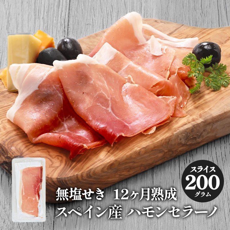 添加物不使用 スペイン産 ハモンセラーノ トラディショナル 12ヶ月熟成 200g[冷凍のみ]【3〜4営業日以内に出荷】発色剤不使用 保存料不使用 無塩せき おつまみ ワイン グルメ パーティー 2,160 ~