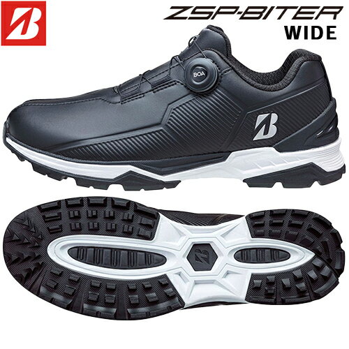 ブリヂストン ゴルフ シューズ ゼロ・スパイク バイター ワイド メンズ SH2507 BK 高いグリップ力とクッション性ある履き心地の『ゆったり幅広4Eモデル』 前モデル(SHG380)対比 “足幅”を広げ、圧迫感のない“よりゆったりとした履き心地”にこだわったモデルです。 上層(柔らかめ)と下層(硬め)の硬度を変えた新設計「2重構造ミッドソール」と、踵部の「TPU製ヒールカウンター」により、クッション性と安定性を確保しています。 さらに、インソールは「ゼロ・スパイク バイター ツアー(SH2401) 」で好評のクッション性の高い「2層インソール」を使用することで、高いクッション性を追求しました。 グリップ性能については、新設計アウトソールを採用することで高いグリップ力を追求しています。 また、雨にも強い防水仕様となっています。 デザインは、幅広でもすっきりと見えるスポーティなアッパーデザインで、WK(白/黒)、BK(黒)に加え、落ち着きのあるアースカラーのWL(白/オリーブ)を加えた3色展開のラインアップです。 【商品仕様】 ■甲材:人工皮革 ■底材:合成底(合成樹脂×合成ゴム) ■重量:約385g(26.5cm片足) ■サイズ:25.0cm〜28.0cm ■インソール:赤 ■4E ■スパイクレス ■セメント製法 ■ベトナム製 ■防水仕様(一般社団法人 日本ゴルフ用品協会が定める防水基準クリア) ■BOAフィットシステム L6ダイヤル搭載 BRIDGESTONE GOLF 【 ブリヂストン 】 ZSP-BITER WIDE BOA SH2507 BK 4E ゴルフシューズ 【 2025年モデル 】 メンズ ゼロ・スパイク バイター ワイド 黒 スパイクレス ボア ダイヤル式 18,810 ~