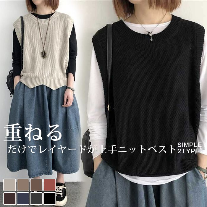 ニットベスト 前開き ディース 好評 カーディンガン レディースベスト ニット ベスト レイヤード 重ね着 普段着 Vネック ノースリーブ 体型カバー ゆったり 着回し 無地 ナチュラル シンプル 大人 カジュアル 秋 春 冬 おしゃれ トップス 1,697 ~