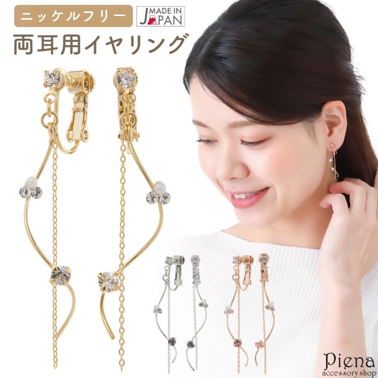 素材真鍮製フェイクパールラインストーンサイズ全長:約4cm横:約0.5mmストーン直径:最大約2.5mm丁寧な作りがご好評頂いているメイドインジャパン。 国産、日本製アクセサリーです。 ワイヤーとチェーンが揺れ動く大人可愛いイヤリング。 華奢なラインにさりげなく配置されたパールとストーンがポイントです♪ 動くたびにゆらゆらと繊細に揺れ、女性らしさを引き立てるデザインです。 ※IMFスプリングは着け心地をソフトにし、耳への負担を和らげ落ちにくくする為、特殊な構造になっております。 長時間着用してもほぼ痛くならないイヤリングです。 記念日、自分へのご褒美、プレゼント、クリスマス、ホワイトデー、誕生日、様々なイベントの贈り物にピッタリのカジュアルジュエリーです。 金属アレルギーの主な原因の一つであるニッケルをほぼ含まずに光沢感、耐食性を併せ持つニッケルフリーコーティング仕上げをしています。 ノンニッケル仕上げ、ノーニッケル仕上げとも呼ばれています。 金属アレルギーをお持ちの方でも比較的安心してご使用いただけます。 (全ての方に金属アレルギーが出ない事を保障する物ではございません)返品・交換について購入後の交換は受け付けておりません。 予めご了承ください。 返品を希望される場合は購入履歴一覧の「ショップへの問い合わせ」よりお問い合わせください。 =========================複数配送先指定について1件の注文に対して、異なる住所への配送は対応出来かねます。 恐れ入りますが、異なる住所へ配送をご希望の場合、配送先毎に分けて注文いただきますようお願い申し上げます。 【アクセサリーWOMEN】ゴールド ピンクゴールド シルバー 【10%OFFクーポン!1/29(木)1:59まで】アクセサリーショップPIENA イヤリング レディース 日本製 ニッケルフリー チェーン ワイヤー キラキラ ロング 揺れる スプリングイヤリング ネジ式 お肌に優しい 金属アレルギー対応 痛くなりにく 1,980 ~