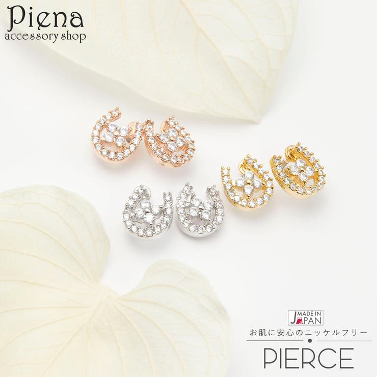 サイズ縦:約6.0mm横(最大):約5.5mm厚み:約1.8mmポスト長さ:約10.5mmポスト太さ:約0.6mm丁寧な作りがご好評頂いております。 メイドインジャパン。 国産、日本製アクセサリーです。 ホースシューモチーフの小ぶりなピアスです。 キュービックジルコニアがリッチな輝きを生み出すので存在感があります。 可愛らしいデザインが耳元のさりげないアクセントにぴったりです。 新技術により貴金属そのままの付け心地を再現。 従来よりも薄い金属メッキを定着させることに成功しました。 24金、プラチナと同等の本ロジウム、18金ピンクゴールドそのままの軽い付け心地でオシャレを手軽に楽しめます。 金属アレルギーの主な原因の1つであるニッケルを使用しない、ノンニッケル加工ですので、金属アレルギーの方にも比較的安心してご使用頂けます。 (全ての方に金属アレルギーが出ないことを保障するものでは御座いません。 )返品・交換について購入後の交換は受け付けておりません。 予めご了承ください。 返品を希望される場合は購入履歴一覧の「ショップへの問い合わせ」よりお問い合わせください。 =========================複数配送先指定について1件の注文に対して、異なる住所への配送は対応出来かねます。 恐れ入りますが、異なる住所へ配送をご希望の場合、配送先毎に分けて注文いただきますようお願い申し上げます。 【アクセサリーWOMEN】シルバー ゴールド ピンクゴールド アクセサリーショップPIENA ピアス レディース 日本製 ニッケルフリー 蹄鉄 ホースシュー キュービックジルコニア チタンポスト 綺麗 可愛い おしゃれ 小さめ ミニ 小ぶり 上品 繊細 クール カジュアル お肌に優しい 安心 安全 パーティー 誕生 1,780 ~