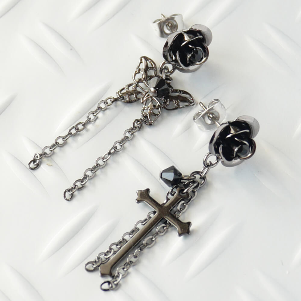 【ゴシック】薔薇 蝶&十字架ピアス ゴスロリ ブラック 3,080 ~