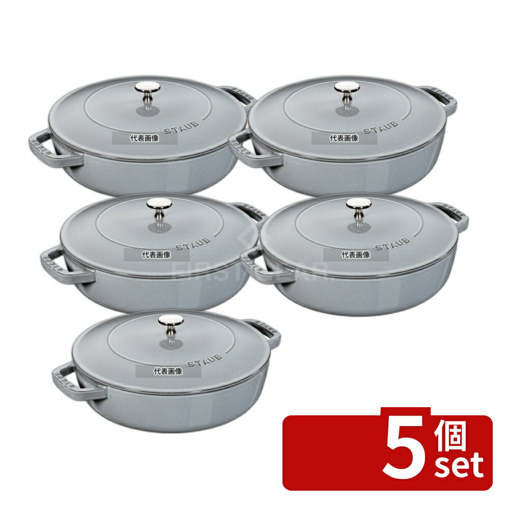 商品の特徴 STAUB(ストウブ) ブレイザーソテーパン 24cm グレー 40511-471 2.4L 底径:185mm ソテーパン No.0560960 ●浅めの鍋にドーム型の蓋が「炒めて煮込む」料理に適したブレイザーソテーパン通常ドーム型の蓋の鍋は、調理中、食材からの水分が上にあがり水滴になり、鍋の端へ流れてしまいます。 ●ブレイザーはその問題を解決するために食材から出た水分をキャッチして食材に投げ返す「システラドロップ構造」で料理を更に美味しくします。 ●200V電磁調理器は非常にパワーがある為、鍋の変形防止・安全面からボリュームは中以下で、鍋の状態、内部の温度には細心の注意をお願いします。 製品仕様 ●型番:40511-471 ●英語商品名:Staub Braiser Saute Pan 24cm Gray 40511-471 ●商品ブランドシリーズ:STAUB(ストウブ) ●品名情報分解1 物:ソテーパン ●品名情報分解2 色:グレー ●品名情報分解3サイズ:24cm ●外寸:底径:185/ ●内寸:φ240/深さ:70 ●重量:3.6kg ●容量:2.4L ●材質:鋳鉄/蓋ツマミ:ステンレス ●電磁調理器:200V ●オーブン:○ JANコード:3272340020032 【5個セット】STAUB(ストウブ) ブレイザーソテーパン 24cm グレー 40511-471 2.4L 底径:185mm ソテーパン No.0560960 126,309 ~