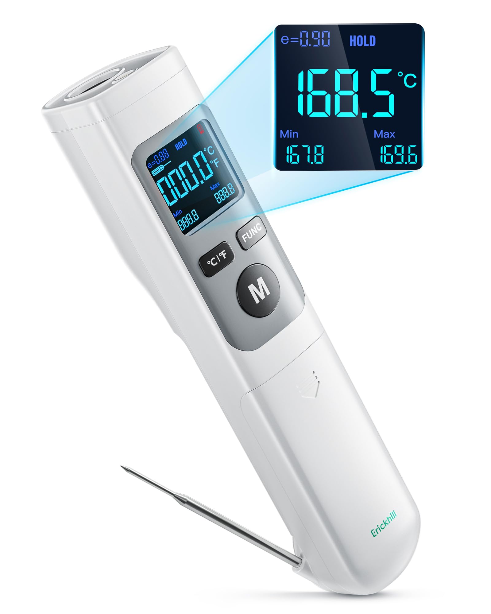 ERICKHILL スティック&放射温度計2IN1 非接触温度計 -50℃〜550℃ 放射率調節 LCD大画面 キッチン温度計 -50℃~260℃ 油温 お肉 揚げ物 コーヒー 工業熱炉 HVACなどの温度管理用料理&工業温度計 4,363 ~