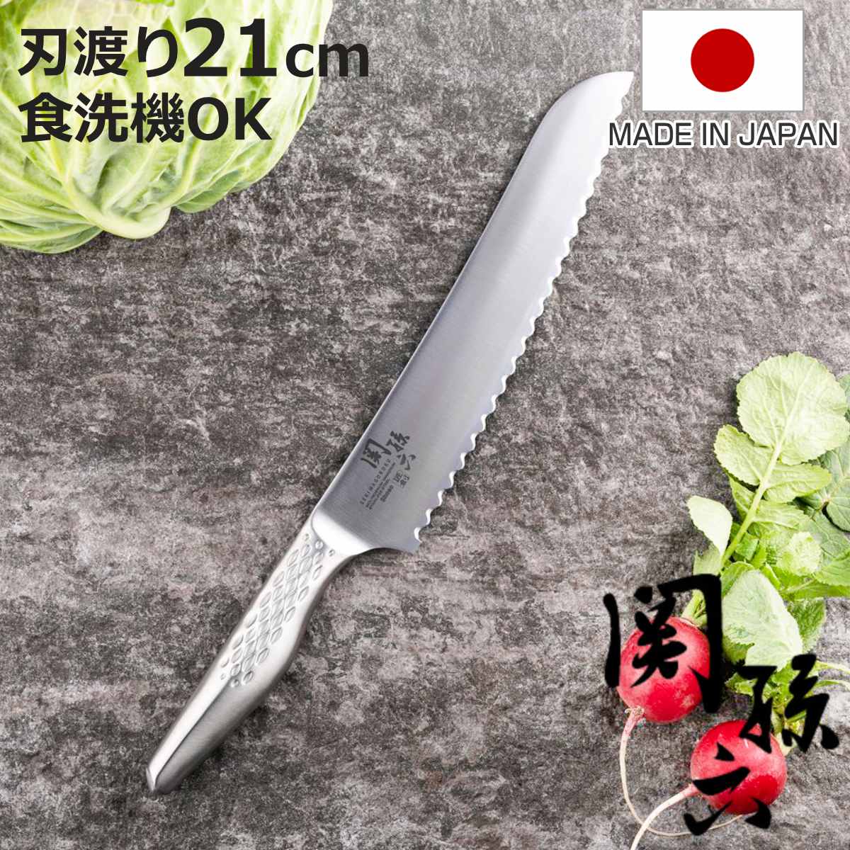 サイズ約 幅4.2×奥行33.8×高さ1.5(cm)刃渡り:約 21cm重量約 118g内容量1本材質刃体:モリブデンバナジウムステンレス刃物鋼柄:18-8ステンレススチール生産国日本製食器洗い乾燥機使用可能区分返品・キャンセル区分(小型商品)ギフトラッピングページを見る●衛生的なオールステンレス製パン切り包丁です。 ●一体成形で継ぎ目がないので、堅牢性に優れています。 ●三工程刃付けで爽快な鋭い切れ味です。 ●グリップ感の高いハンドルは握りやすく、力の入れやすい形状です。 ●食洗機対応で、お手入れも簡単です。 おすすめポイント衛生的に使えるオールステンレス製パン切り包丁刃と柄が一体になった継ぎ目のないオールステンレス製のパン切り包丁です。 丈夫で、汚れがたまりにくく、衛生的に使用できます。 熱湯消毒や食洗機にも対応しており、毎日のお手入れも簡単です。 三工程刃付けで爽快な鋭い切れ味刃付け後にできる角をなめらかに研磨して、食材の切断抵抗を小さくすることで鋭い切れ味を実現しました。 右利き・左利きを問わず使用できます。 商品詳細グリップ感の高いハンドル指がかりがよく、グリップ感の高い流線形のハンドルデザインで、操作性にも優れています。 ブランド紹介シリーズ紹介シェフナイフパン切り包丁【▲このページの商品】菜切り包丁セーフティナイフパーリングナイフ関連キーワード:21センチ ステンレス包丁 ステンレスナイフ ステンレスハンドル 家庭用ナイフ 家庭用包丁 お洒落 おしゃれ オシャレ スタイリッシュ おすすめ オススメ 本格的 便利 下ごしらえ用品 キッチン用品 キッチングッズ 調理道具 調理器具 調理用品 台所用品 料理教室 かっこいい シンプル カッコイイ プレゼント ギフト 贈り物 新生活 LH14638 LH1595 関連商品はこちらパン切り包丁 刃渡り21cm キャスミン 2,710円パン切り包丁 刃渡り210mm SUU パン切2,200円パン切り包丁 19cm Jet Black 2,190円パン切り包丁 刃渡り 160mm セレクト105,280円パン切り包丁 16cm SELECT100×ム7,480円パン切り包丁 ホームベーカリー倶楽部 パンスラ2,290円パン切りナイフ 21cm 関孫六 わかたけ 貝2,190円パン切り包丁 刃渡り21cm スヌーピー 3,620円パン切りナイフ 23.5cm シャープブレッド2,310円パン切り包丁 21.5cmマルシェヴェルダン 4,400円包丁 パン切り包丁 刃渡り20cm 木柄 日本3,620円パン 包丁 Nyammy ねこのパン切りナイフ1,980円 パン切り包丁 21cm 関孫六 匠創 日本製 貝印 ( パン切りナイフ ブレッドナイフ 一体型 ステンレス製 食洗機対応 210mm オールステンレス ナイフ ほうちょう 庖丁 パン カット パンナイフ キッチンナイフ キッチンツール )【3980円以上送料無料】 4,080 ~
