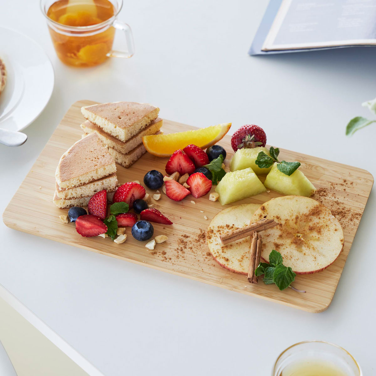 使いやすいベーシックなサイズ! tosca まな板は、ちょうどいいサイズで使いやすく、竹製の優れたまな板です。 竹の柔らかな刃当たりは包丁を長持ちさせます。 また、プレートとしても食材を美しく、そのまま食卓に並べられます。 柔らかな刃当たりで包丁長持ち! 使いやすいベーシックなサイズ、刃当たりがやわらかいので包丁も長持ちする竹製のまな板。 自然の竹から生まれたシンプルながらスタイリッシュなデザインです。 側面のカッティングで持ちやすく、裏面も使えるので、多彩な料理に最適です。 商品の情報 ・ブランド:YAMAZAKI(山崎実業)/日本 ・ジャンル:まな板 ・主な素材:竹 ウレタン塗装 ・生産国:中国 ・サイズ:約W315xD185xH10mm(本体)/約W300xD170mm(裏カット面) ・重量:約400g ・耐熱温度:120℃ ・耐冷温度:-40℃ ・注意事項:食器洗い乾燥機には対応しておりません。 漂白剤は使用不可。 ・その他:刻印のある面が裏面です。