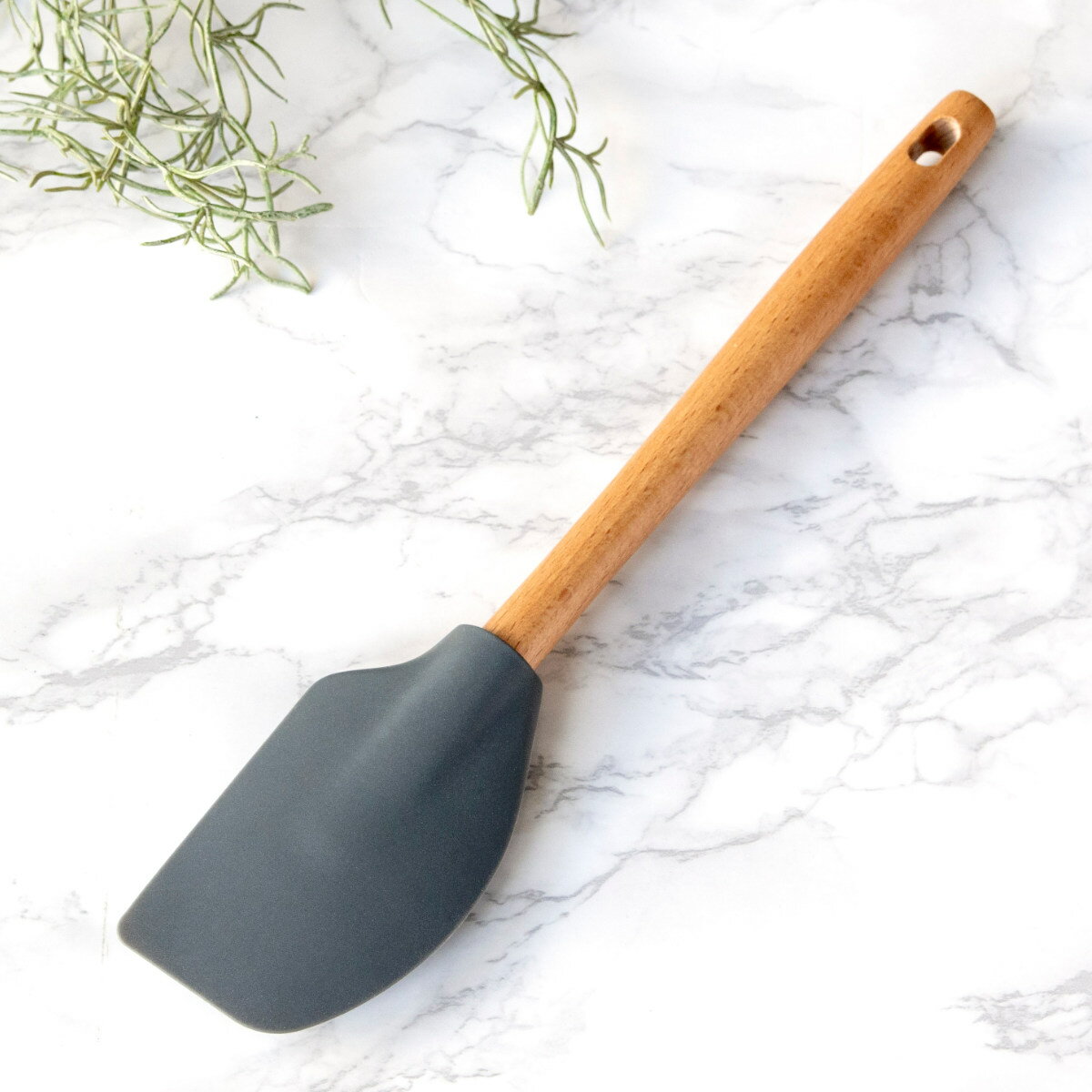 サイズ:W5.7×D1×H26.4cmヘラ部:約5.7×1.1×7.5cm重量:92g材質:本体/シリコーンゴム、芯棒/ステンレス鋼(18-0)耐熱温度204度、耐冷温度-20度説明 衛生的で弾力のある丈夫なゴムヘラ。 混ぜる、移す、均す、裏ごしに使えるゴムヘラです。 特殊金属が中に入っていて丈夫な一体成型なので、衛生的で、耐久性に優れています。 高温、低温調理OKです。