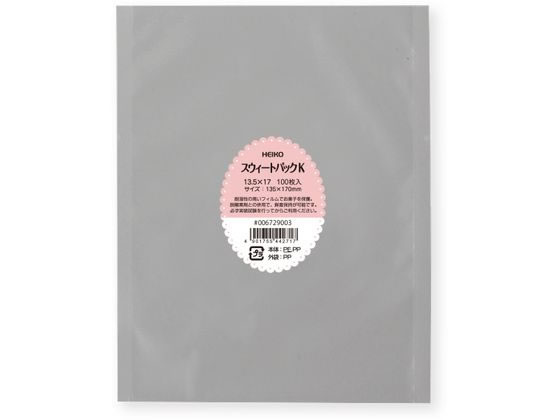 【商品説明】カマス貼りと呼ばれる平袋タイプのポリ袋で、主に焼菓子などの包装に使用されます。 耐湿性の高いフィルムでお菓子を保護。 脱酸素剤との併用で、鮮度保持が可能です。 ヒートシーラーによるシール留めが可能です。 開封用のVノッチ(切り込み)あり。 食品衛生法規格基準適合商品です。 ※必ず実装試験を行ってからご利用ください。 乾燥剤:使用可脱酸素剤:使用可【仕様】●サイズ:外寸:厚0.055×幅100×高120mm/有効幅:約90mm●材質:KOP20/PE15/LLDPE20●生産国:日本●入数:100枚【備考】※メーカーの都合により、パッケージ・仕様等は予告なく変更になる場合がございます。 【検索用キーワード】しもじま シモジマ SHIMOJIMA ヘイコー へいこー HEIKO 包装 包装資材 包装用品 ラッピング ラッピングバッグ ギフト ギフトバッグ 贈り物 プレゼント 製菓 手作り お菓子作り バレンタイン ホワイトデー 誕生日 お祝い パウンドケーキ 100枚 すうぃーとぱっく スウィートパック スイートパック すいーとぱっく 6729000 6729000 厨房用品 製菓用品 E88440 【お取り寄せ】シモジマ ヘイコー スウィートパック K 10×12 100枚 006729000 1,177 ~