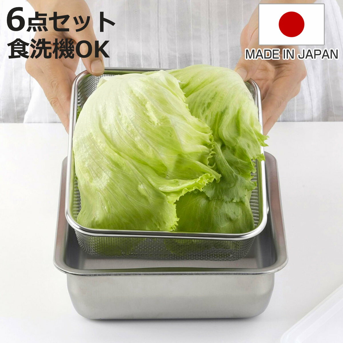 サイズ約 幅26×奥行21.3×高さ6.5(cm)バット:約 幅25.36×奥行20.8×高さ6.2(cm)角ザル:約 幅22.57×奥行17.9×高さ5.5(cm)フタ:約 幅26×奥行21.3×高さ1(cm)内容量6点セット(ザル×2・バット×2・フタ×2)材質バット:18-0ステンレス角ザル:18-8ステンレス(アミ:12メッシュ)フタ:ポリエチレン生産国日本製食器洗い乾燥機使用可能区分返品・キャンセル区分(小型商品)ギフトラッピングページを見る●食材の水切りや冷蔵保存に便利な、ザル×2・バット×2・フタ×2の6点セットです。 ●カット野菜の冷蔵保存やお肉の下味付けなど、お料理の下ごしらえに最適です。 ●長方形なので、無駄なスペースを作らず冷蔵庫にもすっきりと収まります。 ●間口が広く平らなので安定性があり、麺や野菜の湯切りもしやすいです。 ●食器洗い乾燥機に対応しているので、お手入れも楽らくです。 ●サビに強い高品質ステンレスを使用しています。 ●日本製のしっかりとしたつくりで、長くお使いいただけます。 おすすめポイント下ごしらえに便利な6点セット食材の水切りや冷蔵保存に便利な、ザル×2・バット×2・フタ×2の6点セットです。 熱伝導に優れたステンレス製で食材を素早く冷却でき、野菜の水切りから冷蔵保存、お肉の下味付けなど、お料理の下ごしらえに最適です。 冷蔵庫にすっきり収まる長方形なので、無駄なスペースを作らず冷蔵庫にもすっきりと収まります。 蓋つきなので上にも物を積み重ねることができ、デッドスペースを作りません。 湯切りしやすい形状間口が広く平らなので安定性があり、麺や野菜の湯切りもしやすいです。 商品詳細高品質で長く使えるサビに強い高品質ステンレスを使用しています。 また日本製のしっかりとしたつくりで、長くお使いいただけます。 脚付きですべりにくい底裏には脚が付いているので、安定した使用感で快適にお使いいただけます。 食洗機OKでお手入れ楽らく食器洗い乾燥機に対応しているので、お手入れも楽らくです。 商品画像シリーズ紹介ザルバット3点セットザルバット6点セット角型トレー3枚組関連キーワード:深型バット 角型バット 角ざる 角型ざる 6点セット トレイ トレー ステンレストレー ステンレストレイ ステンレスザル 足付きザル 足付き キッチンバット フタ付き 作り置き 収納 丈夫 コンパクト 台所用品 料理道具 調理小物 調理用品 調理道具 調理雑貨 キッチン雑貨 キッチングッズ キッチンアイテム キッチン便利グッズ 料理用 調理器具 キッチン用品 キッチンツール LH14618 関連商品はこちらザルバット3点セット ワイド深型 角ザル 角バ5,060円角型バット&ザルセット シリコンフタ付き ステ2,970円角型バット&ザル9個セット シリコンフタ付き 8,800円バット&ザル 4点セット 深型 ステンレス製 6,270円バット&ザル 2点セット 深型 ステンレス製 3,300円ザル&バット6点セット 角型 深型タイプ 蓋付7,480円ザル バット セット 蓋付き深型ステンレスバッ3,850円ザル&バット3点セット 1/1サイズ 角型 蓋5,720円ザル&バット3点セット 1/2サイズ 角型 蓋3,850円ザル&バット3点セット 1/3サイズ 角型 蓋3,300円バット&ザル ワイド 3点セット 抗菌 電子レ1,320円ザル ボウル トレー 角型 クックサイド 2?638円 ザルバット6点セット ワイド深型 角ザル 角バット 蓋付き スタッキング 日本製 ( ステンレスバット 角型ザル バットセット ふた付き バット ザル 深型 食洗機対応 セット 四角 角型 脚付き 保存 容器 下ごしらえ 湯切り 水切り )【3980円以上送料無料】 9,900 ~