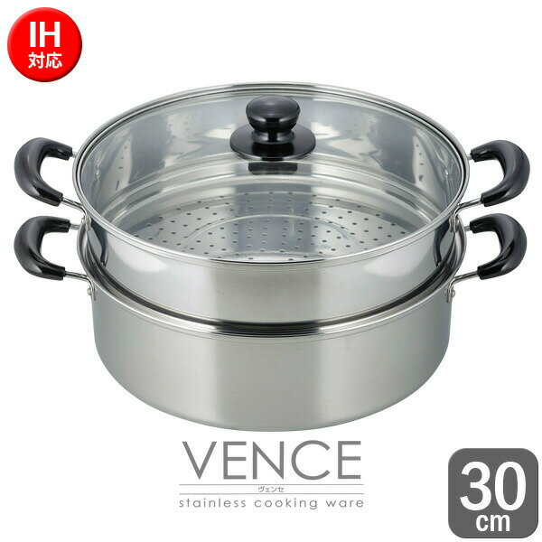 IHクッキングヒーターでも使えるガスコンロでも、IHクッキングヒーターでも使えるステンレス製の二段蒸し器。 耐久性に優れたステンレス製で、一度にもち米を約1升(約1.5kg)蒸すことができます。 家族の分が一度に調理可能大型タイプだから一度にたくさん蒸すことができて、家族の分が一度に調理できます。 便利なガラス蓋調理中の鍋の中がチェックしやすい、全面ガラス蓋です。 下鍋にも使用可能。 煮込み料理・蒸し料理に蒸し器としてだけではなく、下鍋を両手鍋としておでんやシチュー等の煮込み料理にもお使い頂けます。 対応熱源ガスコンロ、IHクッキングヒーター、エンクロヒーター、ラジエントヒーター、ハロゲンヒーター、シーズヒーターお手入れご使用後は食器用洗剤をつけて、スポンジ等で充分に洗い、水気を拭き取り乾燥させてください。 ご注意電子レンジ、オーブンでの使用はしないでください。 火災の危険があるので、天ぷら・揚げ物はしないでください。 食器洗浄機・食器乾燥機は使わないでください。 白く濁ったり割れることがあります。 IHクッキングヒーターでご使用になる場合は、必ず「中火以下」で使用してください。 強火力でのご使用は本体変形及び器具の破損の原因になります。 空焚きはしないでください。 本体変形及び器具の破損の原因になります。 IHクッキングヒーターを使用時、少量の油を入れた時に発火する危険があります。 下ごしらえ等で炒める作業が必要な場合は、フライパン等で炒めてから鍋に入れてください。 サイズ(約)幅41.9×奥行31.8×高さ21.7cm満水容量(下鍋)7.1L重量(約)2.34kg材質上鍋・下鍋/ステンレス鋼(クロム16%)品番VR-8183製造国中国メーカー和平フレイズ商品バリエーションあわせて買いたい 【3/10 全品ポイント5倍】ヴェンセ IH対応 二段蒸し器 30cm VR-8183 | 蒸し鍋 蒸す 鍋 ふかす 調理鍋 むし料理 むす 赤飯 もち米 茶碗蒸し プリン シュウマイ 豚まん 4,180 ~