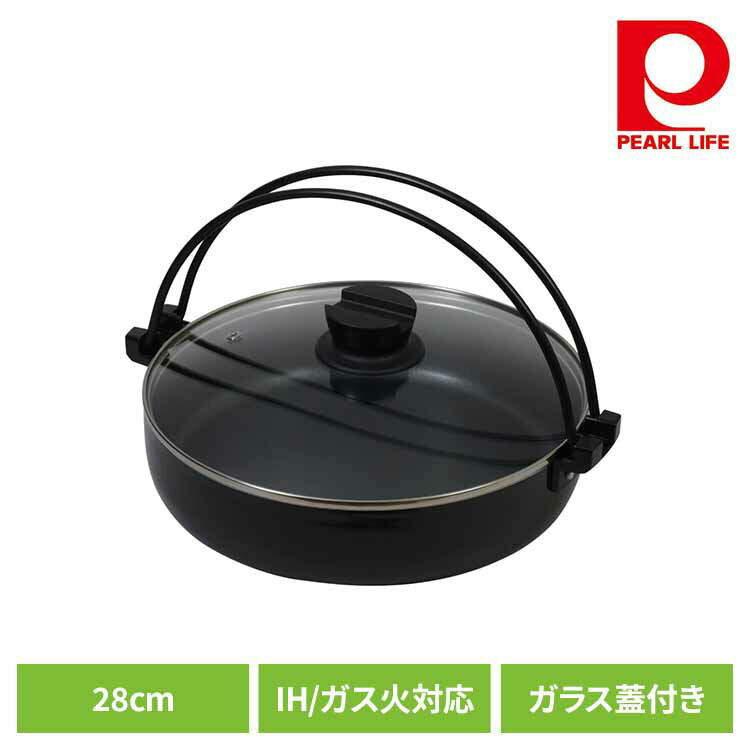 ふっ素樹脂加工でお手入れ簡単。 ふたつまみに菜箸やお玉を置くことができます。 オール熱源対応。 ●商品サイズ(cm)幅約31×奥行約27×高さ約12●商品重量約1.535kg●材質表面加工/内面:ふっ素樹脂塗膜加工 外面:焼付け塗装 材料の種類/本体:アルミニウム合金 はり底:ステンレス鋼(クロム12%) つる:鉄(エポキシ樹脂塗装) 蓋 品名:強化ガラス製器具 強化の種類:全面物理強化 縁リング:ステンレス鋼 蓋つまみ・座板:フェノール樹脂(耐熱温度150)(検索用:鍋 26cm IH ガス火 オール熱源対応 ふっ素加工 卓上 こびりつきにくい お手入れ簡単 ステンレス 4549308558579)最強翌日配送対象商品に関するご案内 最強翌日配送対象商品・対象地域に該当する場合は最強翌日配送マークがご注文カゴ近くに表示されます。 最強翌日配送可能なお支払方法は【クレジットカード、代金引換、全額ポイント支払い】のみとなります。 下記の場合は最強翌日配送対象外となります。 ・15点以上ご購入いただいた場合 ・時間指定がある場合 ・ご注文時備考欄にご記入がある場合 ・決済処理にお時間を頂戴する場合 ・郵便番号や住所に誤りがある場合 ・最強翌日配送対象外の商品とご一緒にご注文いただいた場合 ・お届け先住所文字数が40文字以上の場合 パール金属 すきやき鍋 26cm IH ガス火対応 ガラス蓋付 ふっ素加工 おうち御膳 ブラック HB-5857鍋 26cm IH ガス火 オール熱源対応 ふっ素加工 卓上 こびりつきにくい お手入れ簡単 ステンレス パール金属 [2603SX] 3,300 ~