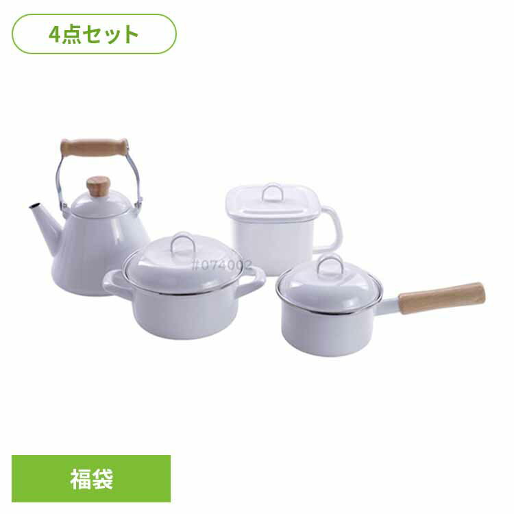 コンパクトなサイズで使いやすいシンプルな鍋とケトルの4点セット。 お鍋にはそれぞれ保存用のフタが付属しているので、残った料理等をそのまま保存出来て便利です。 鉄(ほうろう用鋼板)にガラス質を焼き付けたホーローは保温性に優れ酸・塩分に強く、におい汚れも付きにくくついてもスッキリと洗い落とせます。 200V電磁調理器との相性も良く効率良く加熱でき、金気を出さないので、ケトルはコーヒーやお茶を淹れたりするのに最適です。 当社の琺瑯製品は、日本琺瑯工業会のSマークを取得しています。 このSマークは安全性と品質を重視して規格認定したマークです。 ●セット内容片手鍋12cm、両手鍋15cm、密閉フタ、キューブクック、ケトル●商品サイズ(cm)片手鍋:幅約27.5×奥行約13.5×高さ約13両手鍋:幅約22×奥行約16.5×高さ約13密閉フタ:幅約14.5×奥行約14.5×高さ約12.5キューブクック:幅約19×奥行約15×高さ約13.5ケトル:幅約19.5×奥行約17×高さ約21.5 ●商品重量片手鍋:約0.44kg、両手鍋:約0.62kg、密閉フタ:約0.05kg、キューブクック:約0.66kg、ケトル:約0.76kg●容量片手鍋:約0.8L、両手鍋:約1.6L、キューブクック:約1.5L、ケトル:約1.5L●材質【片手鍋】本体:ほうろう用鋼板、ハンドル:天然木・フタ:ポリエチレン【両手鍋】本体:ほうろう用鋼板、フタ:ポリエチレン【キューブクック】本体:ほうろう用鋼板、保存用フタ:ポリプロピレン・シリコーン【ケトル】本体:ほうろう用鋼板、ハンドル・つまみ:天然木●IH対応 (検索用:琺瑯 ソースパン キャセロール 味噌ポット やかん 4点セット 福袋 IH ガス ガス火 4977618117719)最強翌日配送対象商品に関するご案内 最強翌日配送対象商品・対象地域に該当する場合は最強翌日配送マークがご注文カゴ近くに表示されます。 最強翌日配送可能なお支払方法は【クレジットカード、代金引換、全額ポイント支払い】のみとなります。 下記の場合は最強翌日配送対象外となります。 ・15点以上ご購入いただいた場合 ・時間指定がある場合 ・ご注文時備考欄にご記入がある場合 ・決済処理にお時間を頂戴する場合 ・郵便番号や住所に誤りがある場合 ・最強翌日配送対象外の商品とご一緒にご注文いただいた場合 ・お届け先住所文字数が40文字以上の場合 福袋 4点セット OT26-100.W琺瑯 ソースパン キャセロール 味噌ポット やかん 4点セット 福袋 IH ガス ガス火 富士ホーロー 12,001 ~