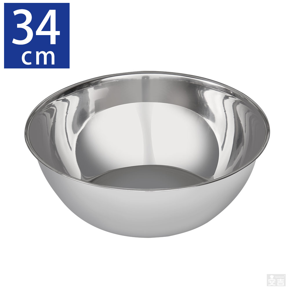 ステンレスボウル 34cm 【サイズ】(約)外径Ф356×深さ128(mm) 【容量】(約)7.58L(満水時) 【重量】(約)0.57kg 【材質】ステンレス SUS201 【備考】直火不可、食洗機対応 【メーカー】KIPROSTAR(キプロスター) ※ご購入時期により製品の仕様が異なる場合がございます。 あらかじめご了承ください。 材料の混ぜ合わせや計量など、調理の下ごしらえの必需品であるステンレスボウル。 製菓店やケーキ店などの業務用でのミキシング使用や、ご家庭でのお菓子作り、野菜や果物・食器などを洗うサラダボウルとしても最適。 ステンレスは錆びにくいのはもちろんのこと、熱や酸に強く耐久性にも優れています。 衛生面、耐久性に優れた安吉のステンレスボウル。 ※商品サイズ表記の【34cm】は内径です。