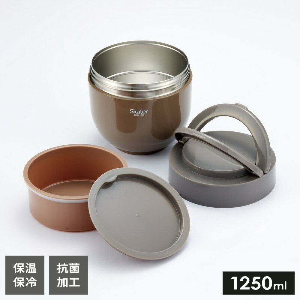 あったかごはんを持ち運べるカフェ丼温かいご飯や冷たい麺類をどんぶりスタイルで楽しめる、丼型の保温弁当箱。 【大容量!1250ml】お昼まであったかい・つめたいが続く本体は、高い保温・保冷力のある真空二重構造。 オールシーズンでお使いいただけます。 保温効力:61度以上(6時間)、保冷効力:10度以下(6時間)便利な2段式ごはんと具に分けられる中容器付き。 具を後のせ出来るので、ご飯や麺が汁でふやけません。 中容器と中フタは、汁漏れ防止のパッキン付きで、汁気の多い具材もOK。 電子レンジ対応(中容器のみ)プラスチック製の中容器は、フタを外して電子レンジで温められます。 ※本体は絶対に電子レンジで使用しないでください。 抗菌仕様Ag+銀イオンによる抗菌仕様で、細菌の増殖を抑制します。 ※すべての細菌の増殖を抑制するものではありません。 ガッツリ食べたい方に!大盛メニューも!本体に入るご飯の量は、お茶碗約3.7杯分。 (お茶碗1杯=約200mlとして)ご注意フタ・本体は食器洗い乾燥機で使用しないでください。 (中容器は食洗機でお手入れ可能です。 )牛乳、乳飲料、果汁などは入れないでください。 内容物が漏れる原因になりますので、持ち運びの際は、必ず立てた状態で持ち運びください。 煮沸消毒・アルカリ性洗剤またはオレンジオイル系洗剤の使用はおやめください。 サイズ(約)直径14.4×高さ15.2cm容量(約)総容量/1250ml(中容器500ml、本体750ml)重量(約)590g材質本体/ステンレス鋼(アクリル樹脂塗装) ハンドル・中容器・中容器フタ/ポリプロピレン フタ/ポリプロピレン(中材/発泡スチロール) 中容器・中容器フタ/ポリプロピレン パッキン/シリコーンゴム 底板/熱可塑性エラストマー耐熱温度ハンドル・中容器・中容器フタ・フタ・中容器・中容器フタ・パッキン/140度 底板/70度耐冷温度-20度保温効力61度以上(6時間)保冷効力10度以下(6時間)品番LDNO13AG製造国中国メーカースケーター商品バリエーションあわせて買いたい 保温弁当箱 折りたたみハンドル付き 保温・保冷丼ジャー 1250ml ナッツブラウン LDNO13AG | ハンドル付き 保温 保冷 どんぶり 丼 ランチ お弁当 ランチボックス 麺類 ご飯 軽量 2段 2,980 ~