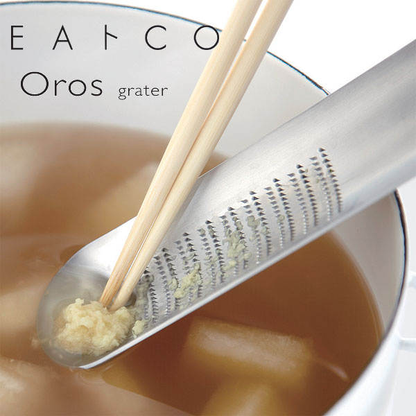 薬味を卓上ですりおろし、さっと料理に添え新鮮なままいただけます。 周囲にカーブをつけたトレー形状で、すって出た出汁はこぼれにくく、お鍋の汁ものなどに薬味を溶かしながら入れられます。 サイズ:横幅4.7×奥行20.3×高さ1.2cm 材質:ステンレス 備考:日本製 メール便可能です。 (3つまで)「EAトCO」のダイニングにも映える、美しいフォルムのおろし金。 ステンレスなので刃が硬く、軽い力でおろせます。 楽しく料理をつくる、そして食べる。 テーマは「 EAT+COOKING 」。 キッチンからダイニングへ、ボーダレスに楽しさ、心地良さを演出してくれる道具を創りたい。 そんな想いから生まれた「 EAトCO 」シリーズです。 周囲にカーブをつけたトレー形状で、すって出た出汁はこぼれにくく、お鍋の汁ものなどに薬味を溶かしながら入れられます。 ワサビやショウガなどの薬味を卓上ですりおろし、新鮮なまま料理に添えられます。 繊維がからみにくく、お手入れも簡単です。 EAトCOの製品は、主に新潟県燕市・三条市地域の高度な金属加工技術によって作られています。 キッチンや食事のシーンでの快適な機能と使いごこち、テーブル上で料理を引き立て演出する、シンプルなスタイルにもこだわっています。 EAトCO Shibolu シボル EAトCO Hasam tongs イイトコ ハサム トング EAトCO Suqu serving spoon イイトコ スクウ サービングスプーン EAトCO Saibashi tongs イイトコ サイバシ トング EAトCO Oros grater イイトコ オロス おろし金【ヨシカワ】 2,420 ~