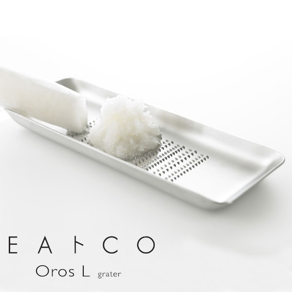 そのままテーブルに出せる洗練された角形フォルムのおろし金。 しっかりした目立てで、チーズや大根も力を入れずにおろせます。 少し傾けるだけのフチの斜め角から水分を切ることができます。 サイズ:横幅7×奥行20×高さ1.5cm 材質:ステンレス 備考:日本製 メール便可能です。 (2つまで)「EAトCO」のダイニングにも映える、美しいフォルムのおろし金です。 楽しく料理をつくる、そして食べる。 テーマは「 EAT+COOKING 」。 キッチンからダイニングへ、ボーダレスに楽しさ、心地良さを演出してくれる道具を創りたい。 そんな想いから生まれた「 EAトCO 」シリーズです。 トレーのようなモダンデザインなので、そのままテーブルに出しても素敵です。 ステンレス製で刃が硬く、大根おろしも軽い力でおろせます。 少し傾けるだけのフチの斜め角から水分を切ることができます。 EAトCOの製品は、主に新潟県燕市・三条市地域の高度な金属加工技術によって作られています。 キッチンや食事のシーンでの快適な機能と使いごこち、テーブル上で料理を引き立て演出する、シンプルなスタイルにもこだわっています。 EAトCO Shibolu シボル EAトCO Hasam tongs イイトコ ハサム トング EAトCO Oros grater イイトコ オロス おろし金 EAトCO Suqu serving spoon イイトコ スクウ サービングスプーン EAトCO Saibashi tongs イイトコ サイバシ トング EAトCO Oki ladie stand イイトコ オキ お玉立て EAトCO Oros L grater イイトコ オロス L おろし金【ヨシカワ】 3,300 ~