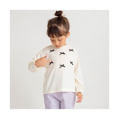 リボンモチーフでガーリーな印象に!色違いで欲しくなるカラーバリエーション。<商品ポイント>・アソートで2種類のデザインをご用意!リボンが胸回りにたっぷりついたアイボリーとラベンダー立体的なチュールリボンが付いたハイヒールデザインのピンクとチャコールグレー・袖口はゴム仕様でフリルっぽくなっているので可愛らしさが際立ちます。・お出かけ・普段使い両方で使っていただけるトップスです。-----透け感:ややあり伸縮性:なし※モデル着用写真についてはイメージの為、実際の 商品とカラーや仕様が異なる場合がございますので、 商品画像をご覧ください。※商品の色味につきまして、お客様のお使いのPCの モニター環境により実際のカラーと画像の色味が 違って見える場合が御座います。 予めご了承の上、ご注文下さい。※店頭・外での撮影画像は光の加減で、 実際の商品より明るく見える場合が御座います。子ども/子供/こども/子供服/キッズ/ジュニア/男の子/女の子【素材】【アイボリー・ラベンダー】本体:ポリエステル65% 綿35% リブ部分:ポリエステル62% 綿33% ポリウレタン5% リボン:ポリエステル100% 【ピンク・チャコールグレー】本体:ポリエステル65% 綿35% リブ部分:ポリエステル62% 綿33% ポリウレタン5% チュール部分:ポリエステル100%別カラーはこちら! グレー(チャコールグレー) ピンク パープル(ラベンダー) ブランシェス branshes アソート長袖Tシャツ (アイボリー) 932 ~