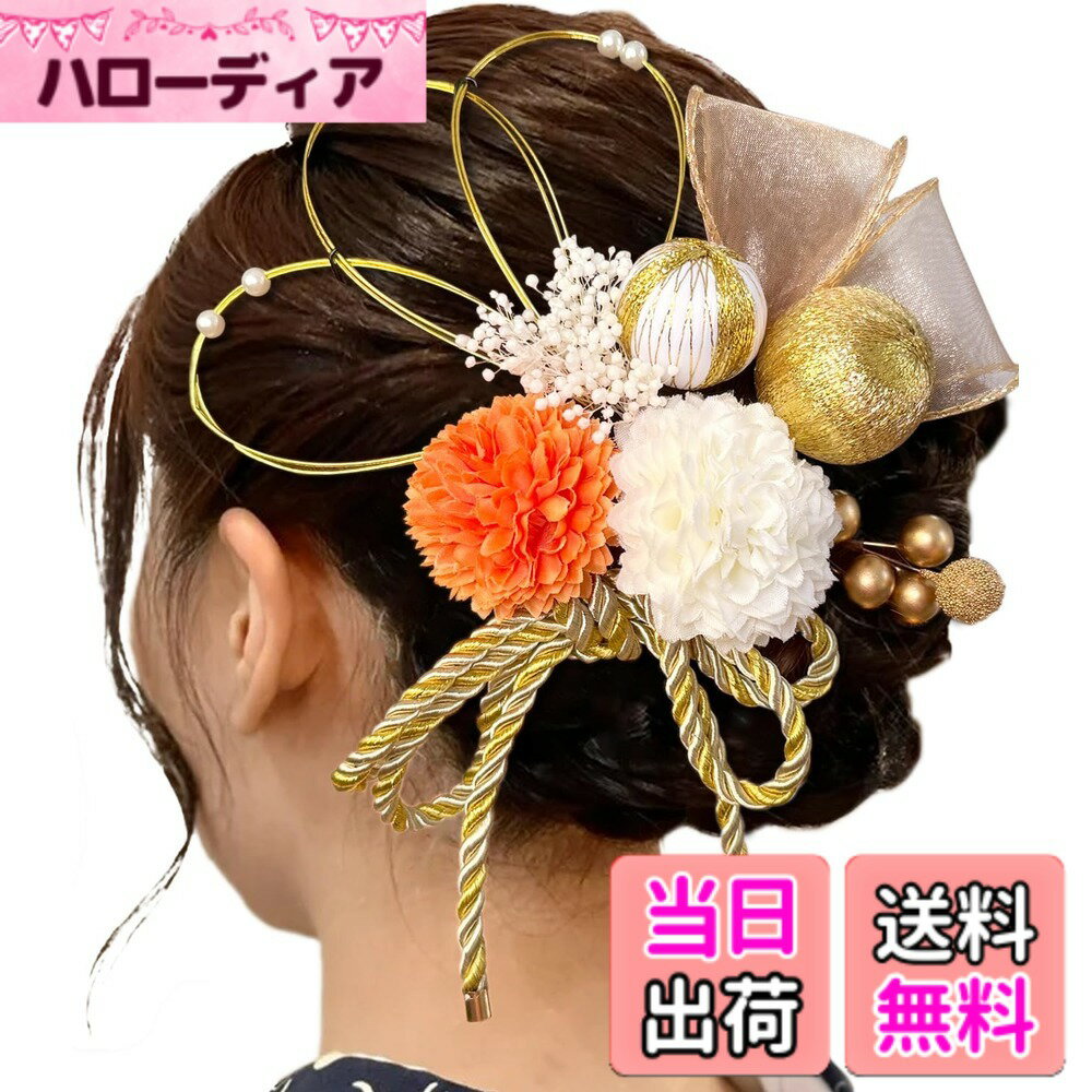 【送料無料】[ULITU] 髪飾り 成人式 ヘアーアクセサリー リボン 水引 かすみ草 和玉 紐 人気 和服 浴衣 着物 振袖 袴 成人式 卒業式 七五三 花火大会 祭り 夏祭り 結納 入学式 結婚式 発表会 色:オレンジ、サイズ:普通 2,017 ~