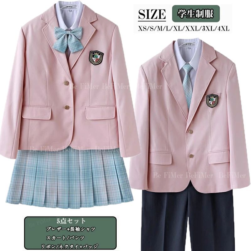 スクール 学生服 チェック柄 リボン ブレザー プリーツスカート 制服 女子高生 jk制服 ブレザー 本格制服 高校制服5点セット 6,930 ~