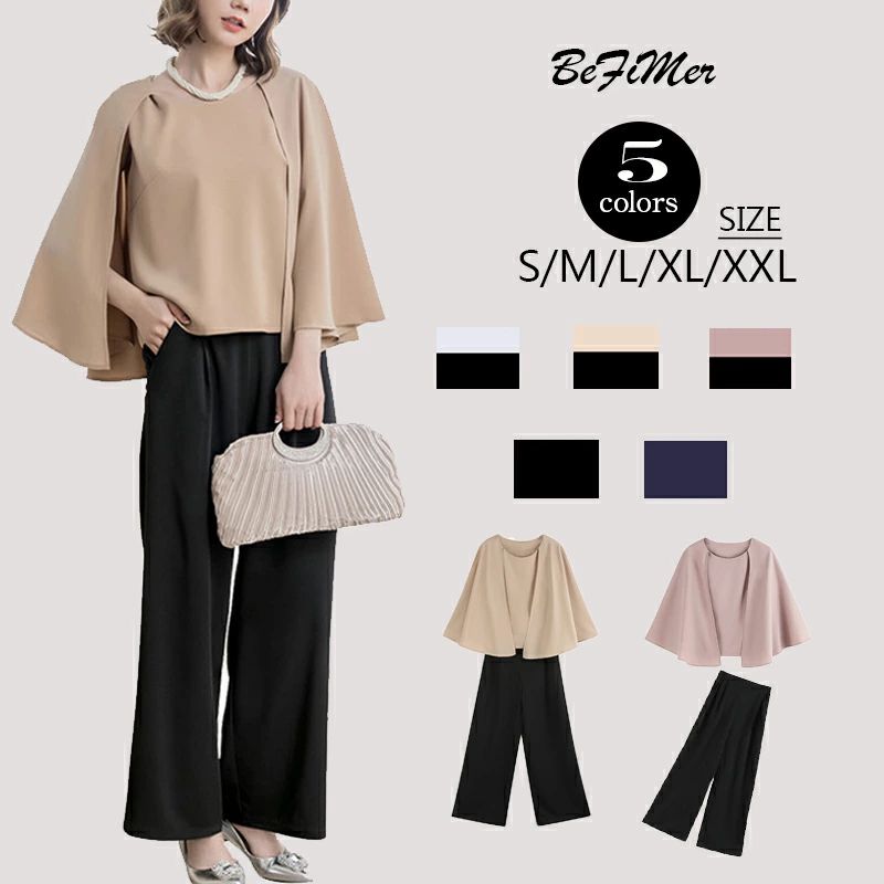 体型カバ フォーマルドレス ワイドパンツ パーティードレス パンツドレス パンツスタイル パンツスーツ セットアップ 2点セット 4,269 ~