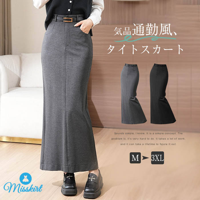 スカート 綿 レディース 新作 タイトスカート 無地 ロングスカート タイト スリット入り ボトムス ロング ストレート ベルト付き ポケット 膝下 大きいサイズ エレガント カジュアル お洒落 大人 美脚 通勤 OL オフィス ビジネス 切り替え 着回し グレー 春 秋 送料無料 3,680 ~