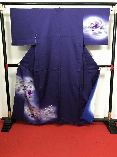 商品説明:赤味感じる濃紺地に鴛鴦模様の染め成し八掛は濃紺のぼかし サイズ:裄63、身丈152、袖丈45.5、前幅26.5、後幅31.5cm 素材:正絹 状態:ランク3 クスミ シミ有 TPO:式典参列 衣装等 仕立て:手縫い 広衿 袷 【中古】Sサイズ 付け下げ 正絹 濃紺地に花鳥模様 5,500 ~