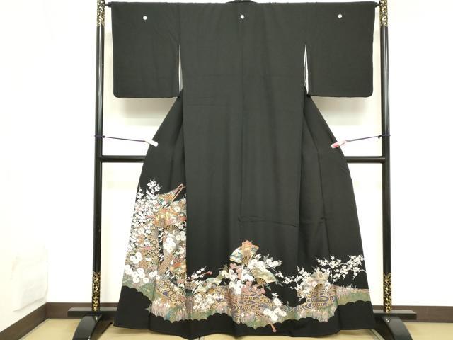 ■■■ サイズ ■■■ 身丈 153cm(肩から) 裄丈 65cm 袖丈 49cm 縫込み 8cm 袖幅 34cm 前幅 24cm 後幅 29cm 着物縫いこみ 内揚げ 10cm 裄 お袖側 約0cm 身頃側 約4.5cm ■■■ 商品詳細 ■■■ 【正絹・五つ紋・比翼仕立て】 状態は画像を添付しておりますので、そちらをご確認下さいますよう宜しくお願い致します。 大変上質な逸品になります。 お安く出品致しますので、是非この機会にいかがでしょうか? ■■■ 注意事項 ■■■ ■モニター発色の具合により色合いが異なる場合がございます。 ■寸法は多少の誤差が生じる場合がございますのでご了承ください。 ■縫込みの長さが左右非対称の場合は短い部分を記載しております。 左右非対称であってもご返品・お値引き等の保証は出来かねますので、ご了承の上ご購入をお願い致します。 ■シミ等のチェックには注意を払っておりますが、見落としがある場合もございますし、個人の見解も様々ですので神経質な方のご購入はお控えください。 ■箪笥に入っておりました着物や帯なので畳みシワや匂いがあるものもございます。 ■お休みは基本的に土日祝となりますが、その他臨時でお休みする場合がございますのでご了承ください。 ■商品の発送は平日のみの発送となります。 ■夜間と土曜、日曜日はお問い合わせの回答が遅れる場合がございます。 ■当店では、お直し、紋入れ、お手入れ等は承っておりません。 ■生地の状態(ヤケ、経年劣化等)によってはサイズ直しが出来ない場合がございます。 その点もどうかご了承のうえ、ご購入をお願いいたします。 ■弊社で取り扱う商品は一点ものにつき、時期や在庫状況に応じて金額が変更となる場合がございます。 ■検針は行っておりません。 予めご了承いただきますようお願いいたします。 ■【洗える着物】と記載のある商品におきましては、商品お届け後に洗濯を行ってしまってからのご返品にはご対応しかねます。 念の為、専門店でのお手入れをお願いいたします。 ■着物のサイズ目安は下記を参考ください↓ <女性着物> お端折り次第で+5cm −1cmが着用可能サイズ 例)身丈170cmの場合、身長160cm〜175cm <男性着物> 身丈+約25cm〜27cm程が適応身長 例)身丈155cmの場合、身長180〜182cm 平和屋着物■豪華黒留袖 友禅 扇面風景花文 正絹 逸品 DABB5340qa 4,620 ~