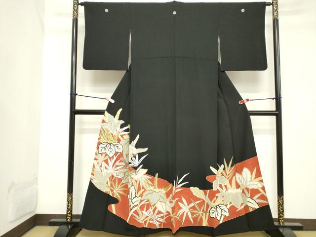 ■■■ サイズ ■■■ 身丈 162cm(肩から) 裄丈 65cm 袖丈 48cm 縫込み 2cm 袖幅 33cm 前幅 24cm 後幅 29.5cm 着物縫いこみ 内揚げ 6.5cm 裄 お袖側 約2cm 身頃側 約2cm ■■■ 商品詳細 ■■■ 【正絹・五つ紋・比翼仕立て・バチ衿】 状態は画像を添付しておりますので、そちらをご確認下さいますよう宜しくお願い致します。 大変上質な逸品になります。 お安く出品致しますので、是非この機会にいかがでしょうか? ■■■ 注意事項 ■■■ ■モニター発色の具合により色合いが異なる場合がございます。 ■寸法は多少の誤差が生じる場合がございますのでご了承ください。 ■縫込みの長さが左右非対称の場合は短い部分を記載しております。 左右非対称であってもご返品・お値引き等の保証は出来かねますので、ご了承の上ご購入をお願い致します。 ■シミ等のチェックには注意を払っておりますが、見落としがある場合もございますし、個人の見解も様々ですので神経質な方のご購入はお控えください。 ■箪笥に入っておりました着物や帯なので畳みシワや匂いがあるものもございます。 ■お休みは基本的に土日祝となりますが、その他臨時でお休みする場合がございますのでご了承ください。 ■商品の発送は平日のみの発送となります。 ■夜間と土曜、日曜日はお問い合わせの回答が遅れる場合がございます。 ■当店では、お直し、紋入れ、お手入れ等は承っておりません。 ■生地の状態(ヤケ、経年劣化等)によってはサイズ直しが出来ない場合がございます。 その点もどうかご了承のうえ、ご購入をお願いいたします。 ■弊社で取り扱う商品は一点ものにつき、時期や在庫状況に応じて金額が変更となる場合がございます。 ■検針は行っておりません。 予めご了承いただきますようお願いいたします。 ■【洗える着物】と記載のある商品におきましては、商品お届け後に洗濯を行ってしまってからのご返品にはご対応しかねます。 念の為、専門店でのお手入れをお願いいたします。 ■着物のサイズ目安は下記を参考ください↓ <女性着物> お端折り次第で+5cm −1cmが着用可能サイズ 例)身丈170cmの場合、身長160cm〜175cm <男性着物> 身丈+約25cm〜27cm程が適応身長 例)身丈155cmの場合、身長180〜182cm 平和屋着物■豪華黒留袖 扇面御所車花文 金銀彩 正絹 逸品 DABB8709cd 4,620 ~