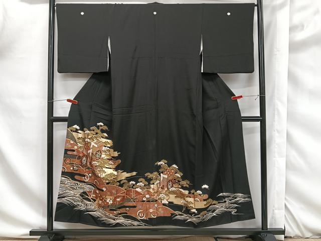 ■■■ サイズ ■■■ 身丈 160cm(肩から) 裄丈 67cm 袖丈 47cm 縫込み 2.5cm 袖幅 35cm 前幅 24.5cm 後幅 30.5cm 着物縫いこみ 内揚げ 5.5cm 裄 お袖側 約1cm 身頃側 約1.5cm ■■■ 商品詳細 ■■■ 【正絹・五つ紋・比翼仕立て・裏地のみポリエステル】 状態は画像を添付しておりますので、そちらをご確認下さいますよう宜しくお願い致します。 大変上質な逸品になります。 お安く出品致しますので、是非この機会にいかがでしょうか? ■■■ 注意事項 ■■■ ■モニター発色の具合により色合いが異なる場合がございます。 ■寸法は多少の誤差が生じる場合がございますのでご了承ください。 ■縫込みの長さが左右非対称の場合は短い部分を記載しております。 左右非対称であってもご返品・お値引き等の保証は出来かねますので、ご了承の上ご購入をお願い致します。 ■シミ等のチェックには注意を払っておりますが、見落としがある場合もございますし、個人の見解も様々ですので神経質な方のご購入はお控えください。 ■箪笥に入っておりました着物や帯なので畳みシワや匂いがあるものもございます。 ■お休みは基本的に土日祝となりますが、その他臨時でお休みする場合がございますのでご了承ください。 ■商品の発送は平日のみの発送となります。 ■夜間と土曜、日曜日はお問い合わせの回答が遅れる場合がございます。 ■当店では、お直し、紋入れ、お手入れ等は承っておりません。 ■生地の状態(ヤケ、経年劣化等)によってはサイズ直しが出来ない場合がございます。 その点もどうかご了承のうえ、ご購入をお願いいたします。 ■弊社で取り扱う商品は一点ものにつき、時期や在庫状況に応じて金額が変更となる場合がございます。 ■検針は行っておりません。 予めご了承いただきますようお願いいたします。 ■【洗える着物】と記載のある商品におきましては、商品お届け後に洗濯を行ってしまってからのご返品にはご対応しかねます。 念の為、専門店でのお手入れをお願いいたします。 ■着物のサイズ目安は下記を参考ください↓ <女性着物> お端折り次第で+5cm −1cmが着用可能サイズ 例)身丈170cmの場合、身長160cm〜175cm <男性着物> 身丈+約25cm〜27cm程が適応身長 例)身丈155cmの場合、身長180〜182cm 平和屋着物■豪華黒留袖 駒刺繍 御所車松花文 金彩 正絹 逸品 DAAP9361ma 1,980 ~