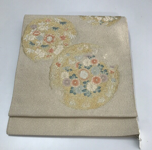 商品説明:艶やかなシルバー地に丸紋文様の織成しお太鼓柄袋帯 サイズ:幅約30、長さ約440cm 素材:正絹 ランク4 クスミ有 TPO:式典参列等 ※帯のみの販売となります 【中古】袋帯 正絹 シルバー地に花丸紋文様 8,800 ~